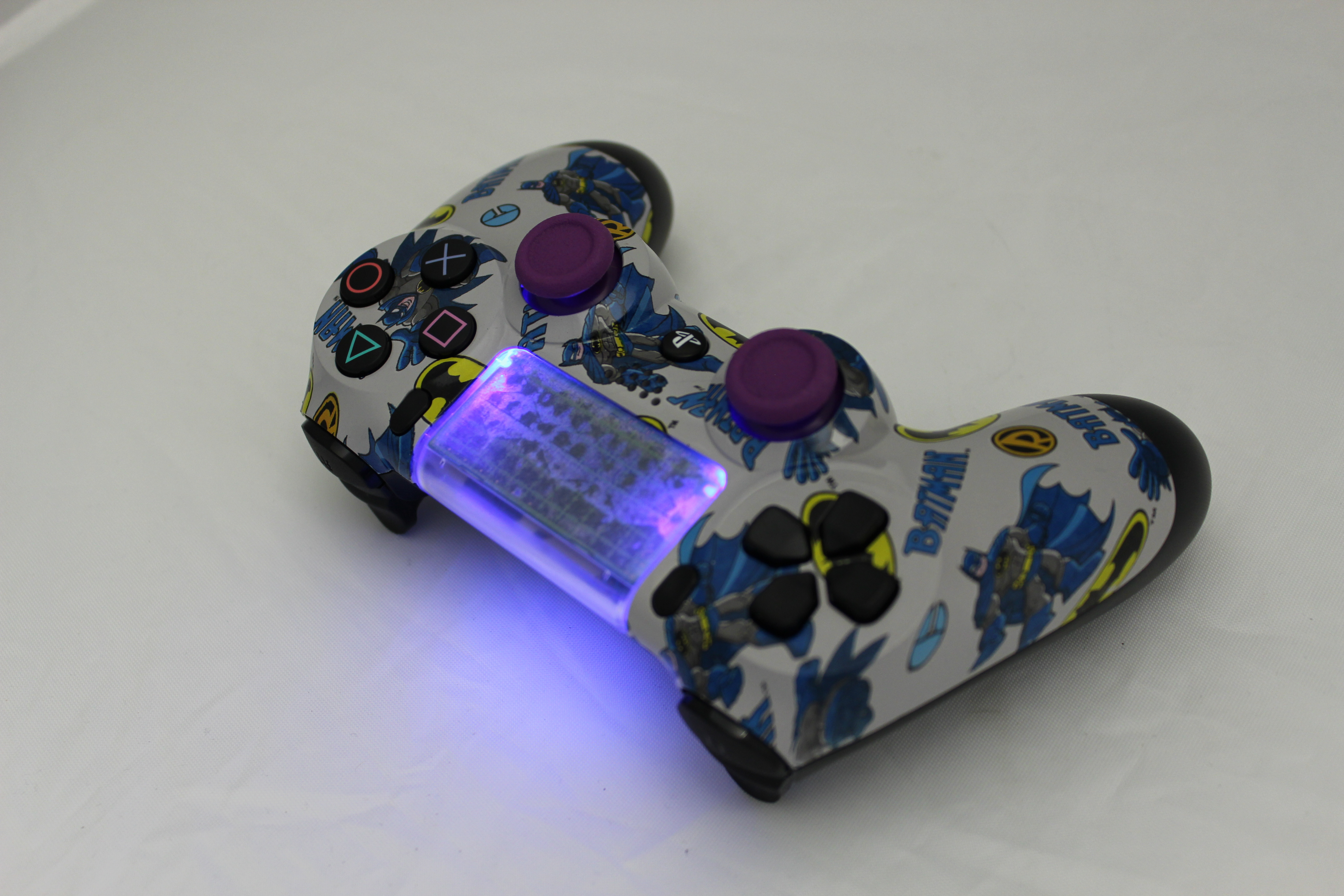 Lit Grey Batman PlayStation 4 Controller photos and movies