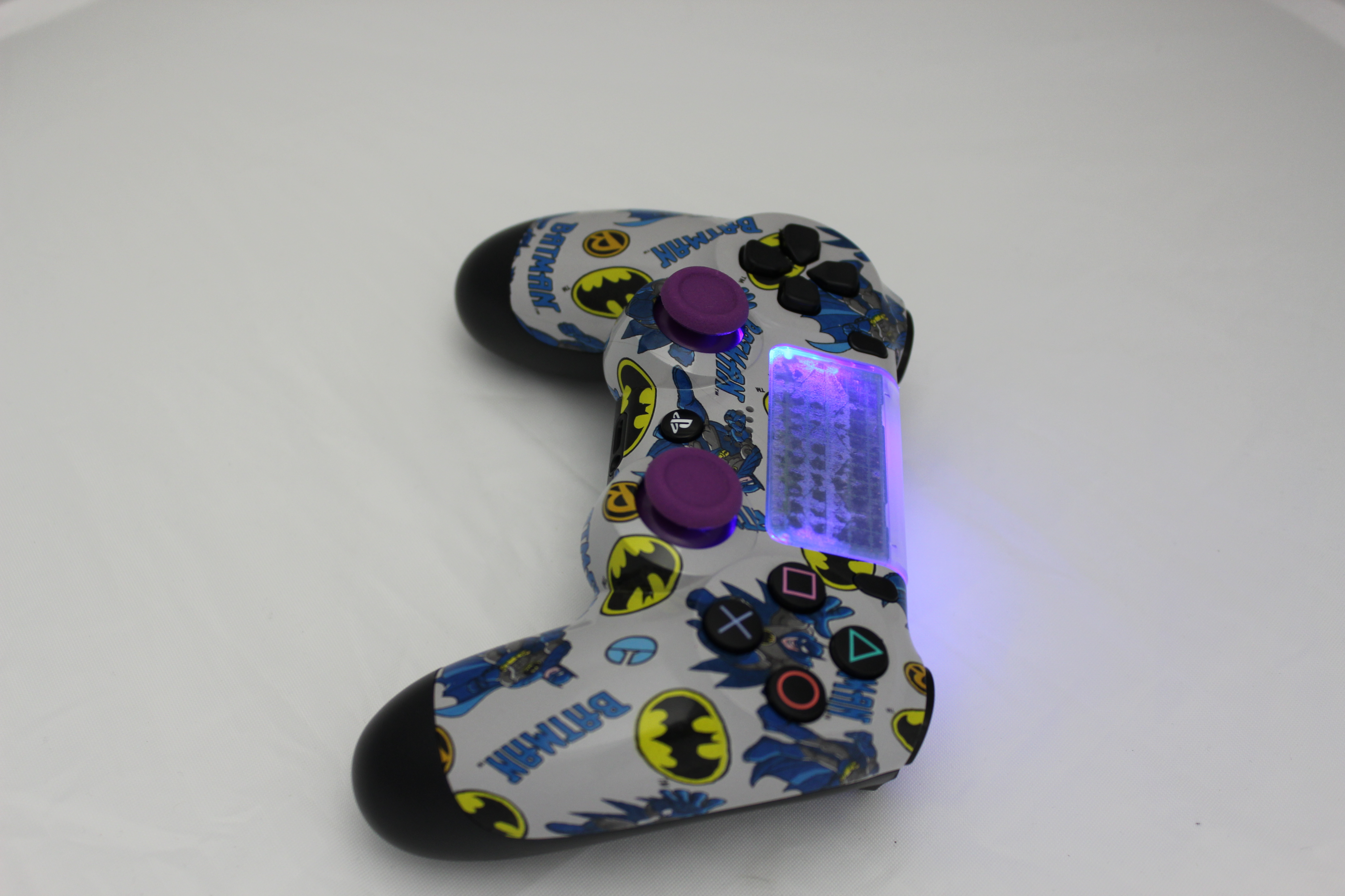 Lit Grey Batman PlayStation 4 Controller photos and movies
