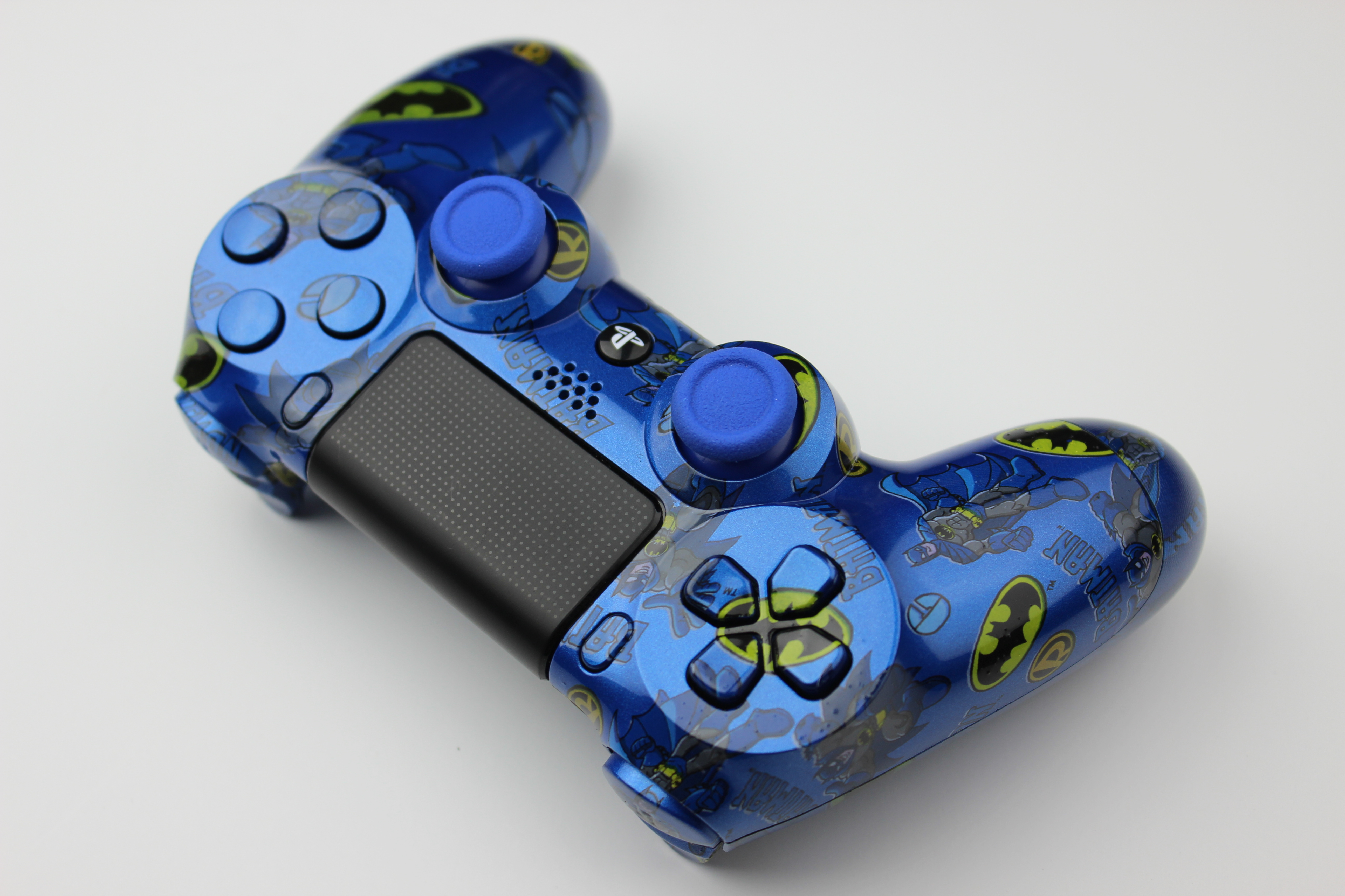 Metallic Blue Batman and Blue PlayStation 4 Controller photos and movies