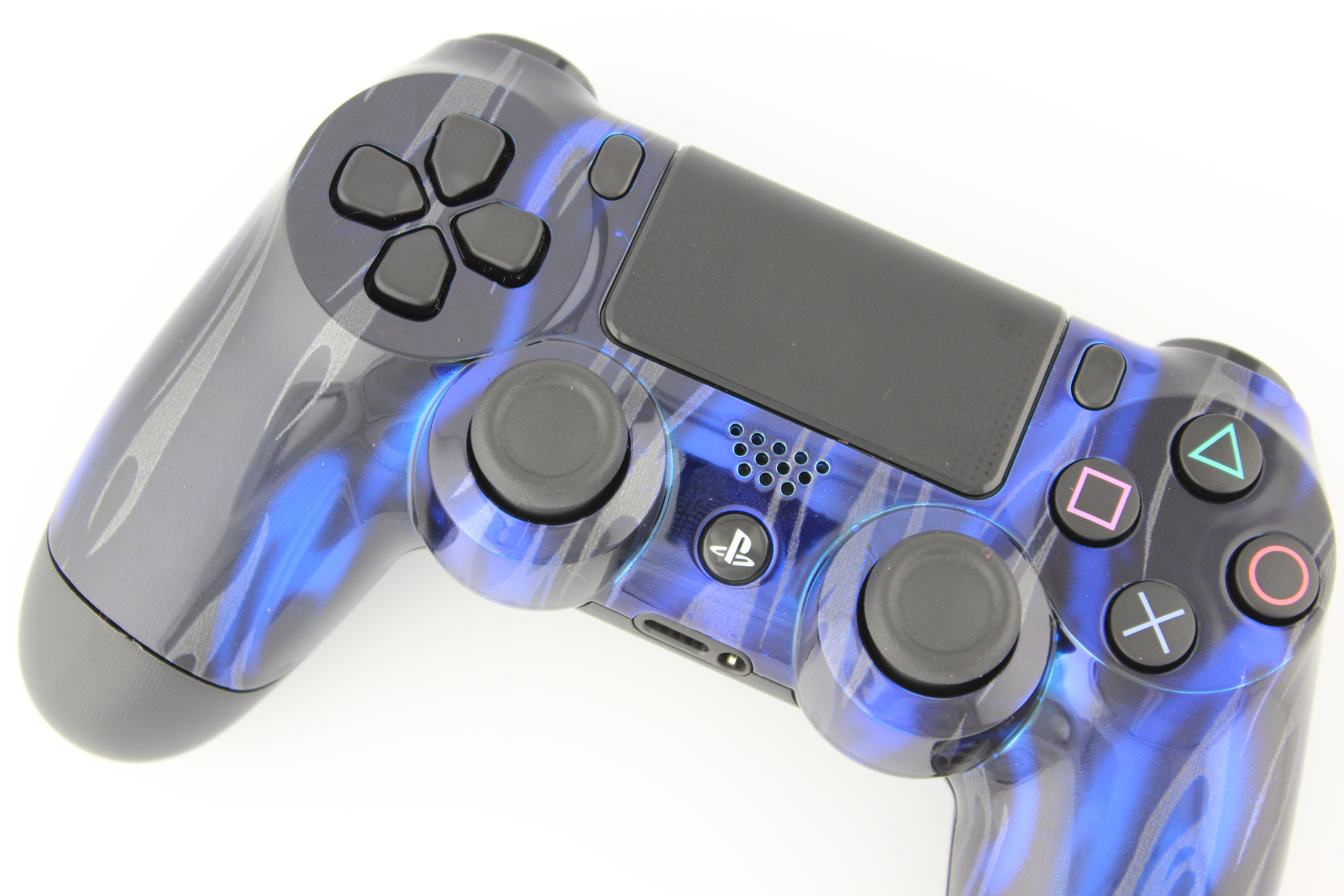 Metallic Blue Black and Silver Flames PlayStation 4 Controller photos and movies