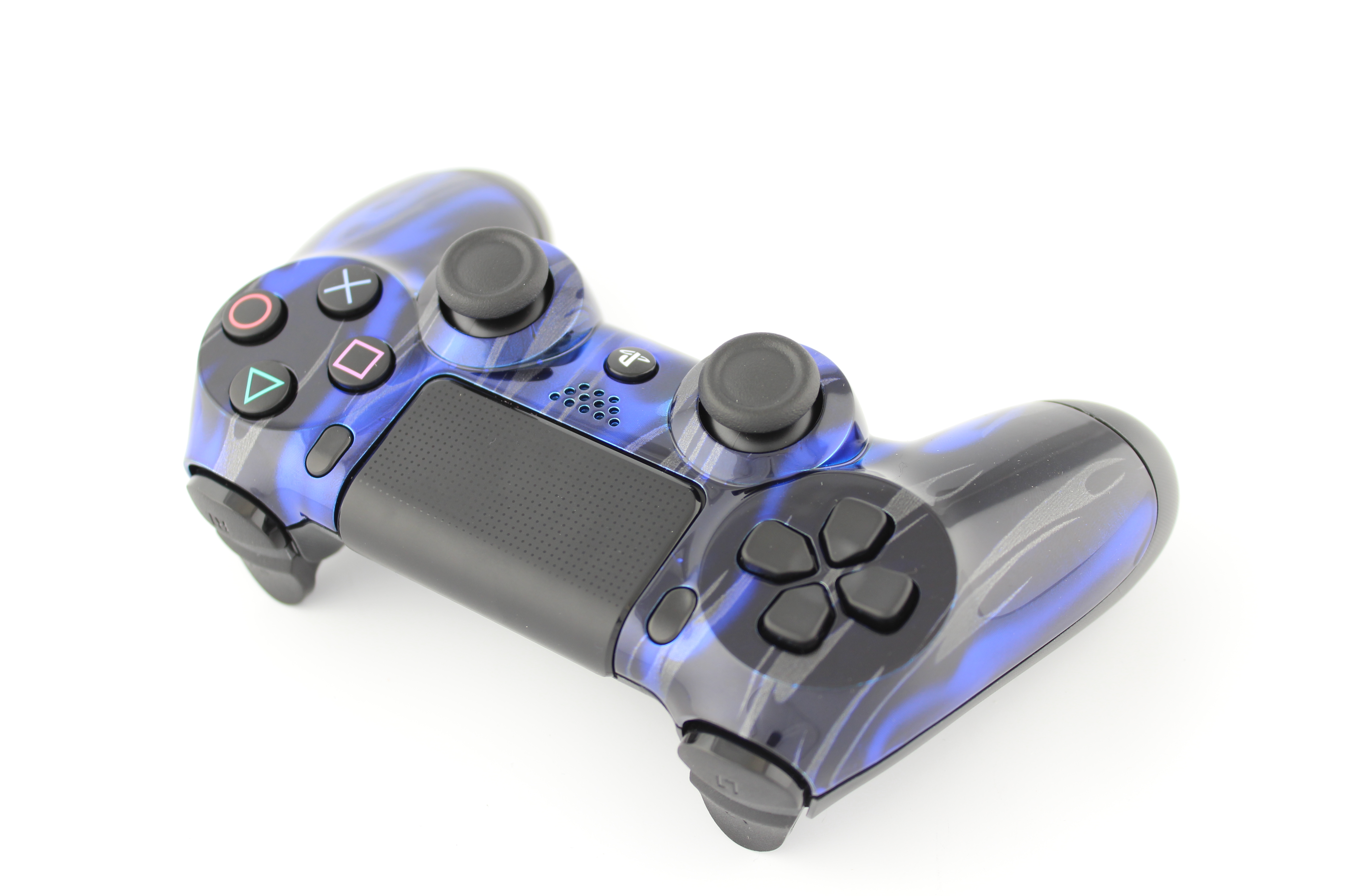 Metallic Blue Black and Silver Flames PlayStation 4 Controller photos and movies
