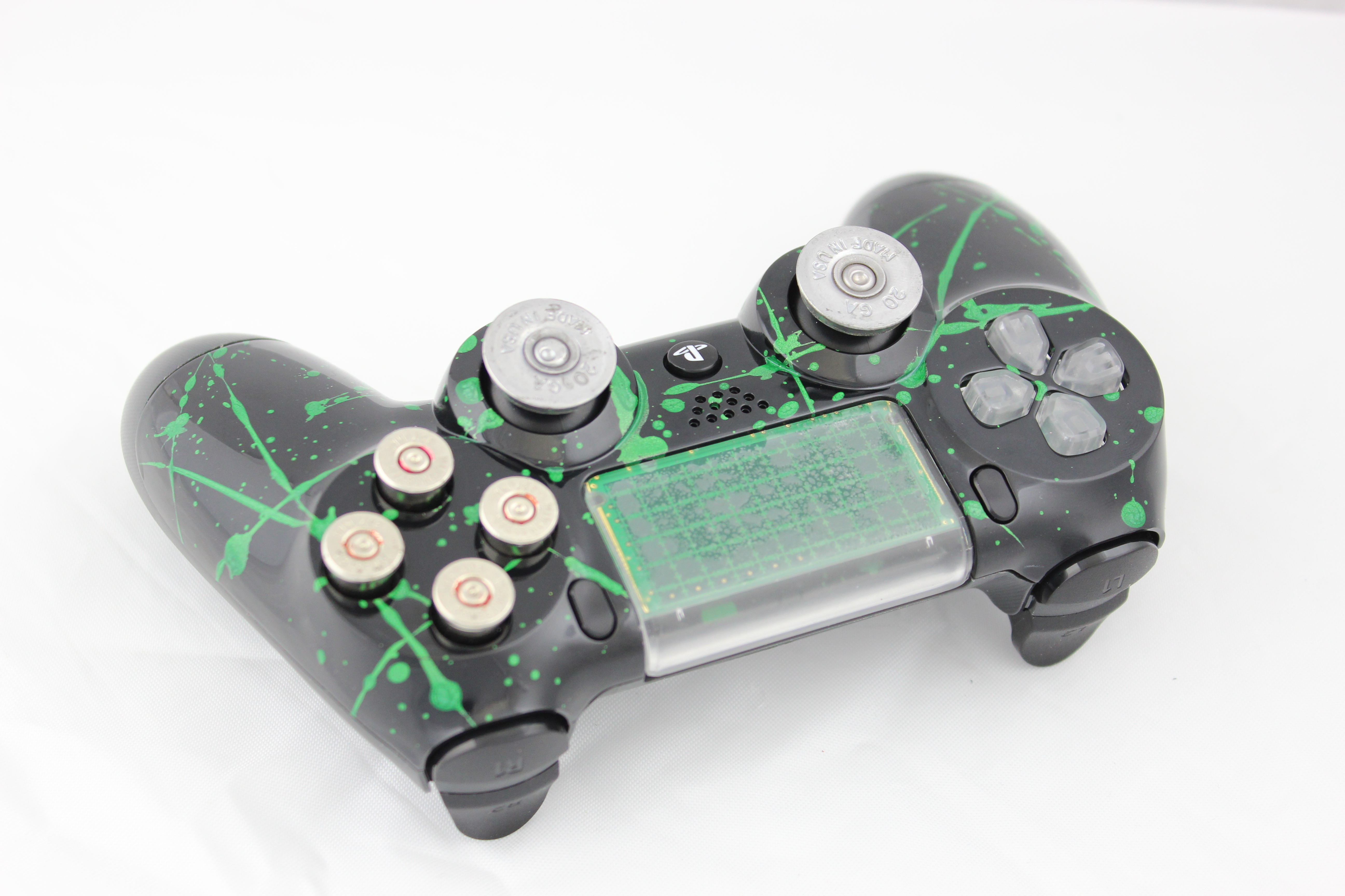 Metallic Green Splatter Black PlayStation 4 Controller photos and movies