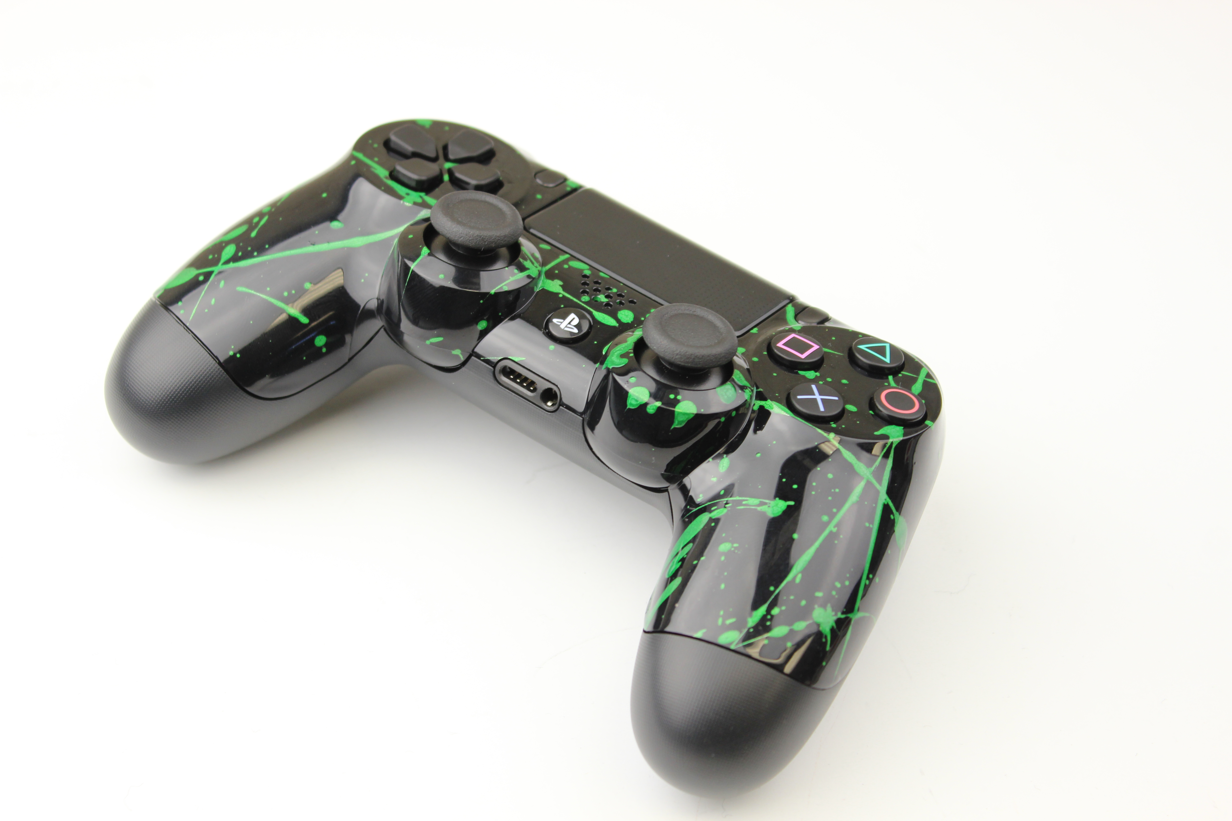 Metallic Green Splatter Black PlayStation 4 Controller photos and movies