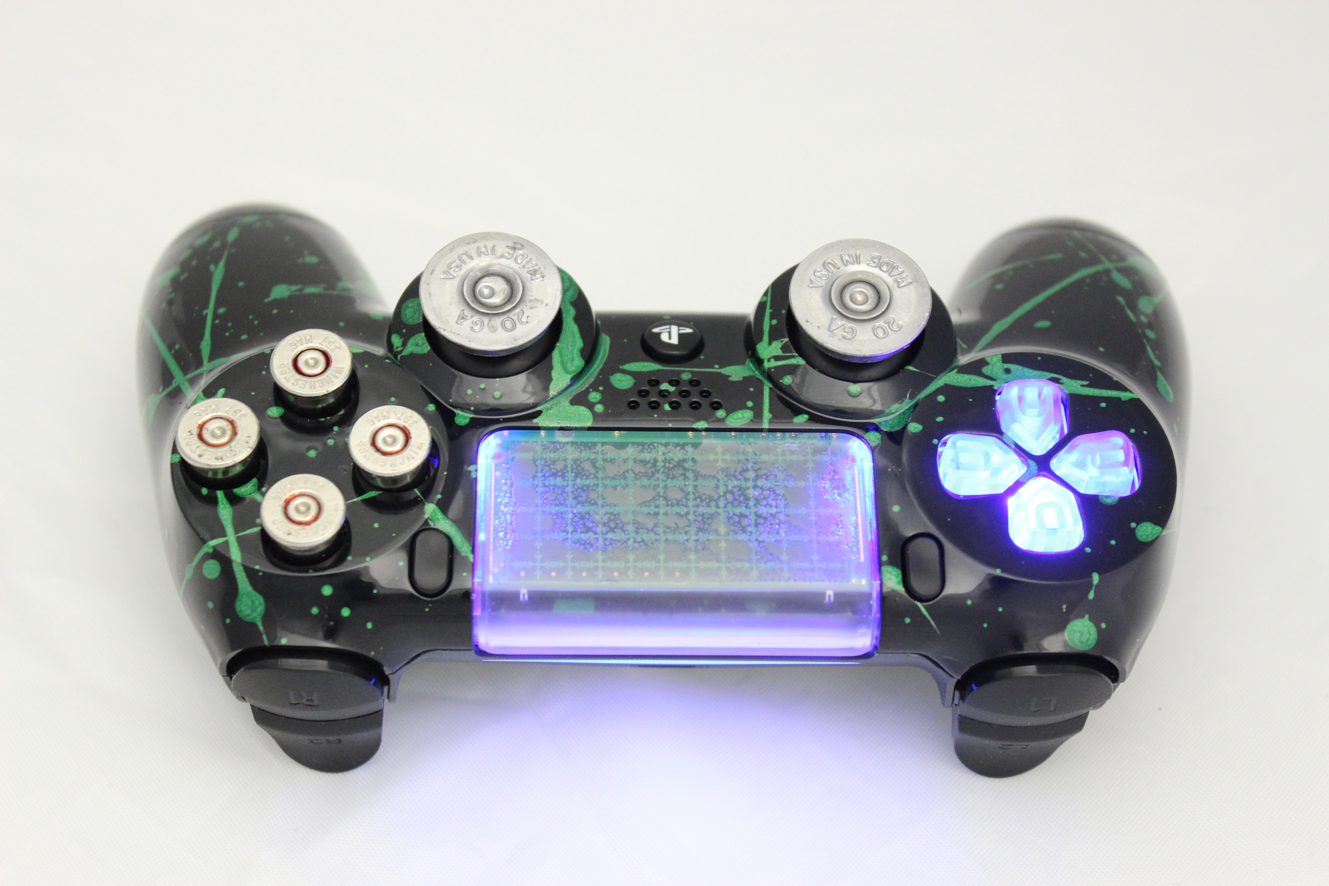 Metallic Green Splatter Black PlayStation 4 Controller photos and movies