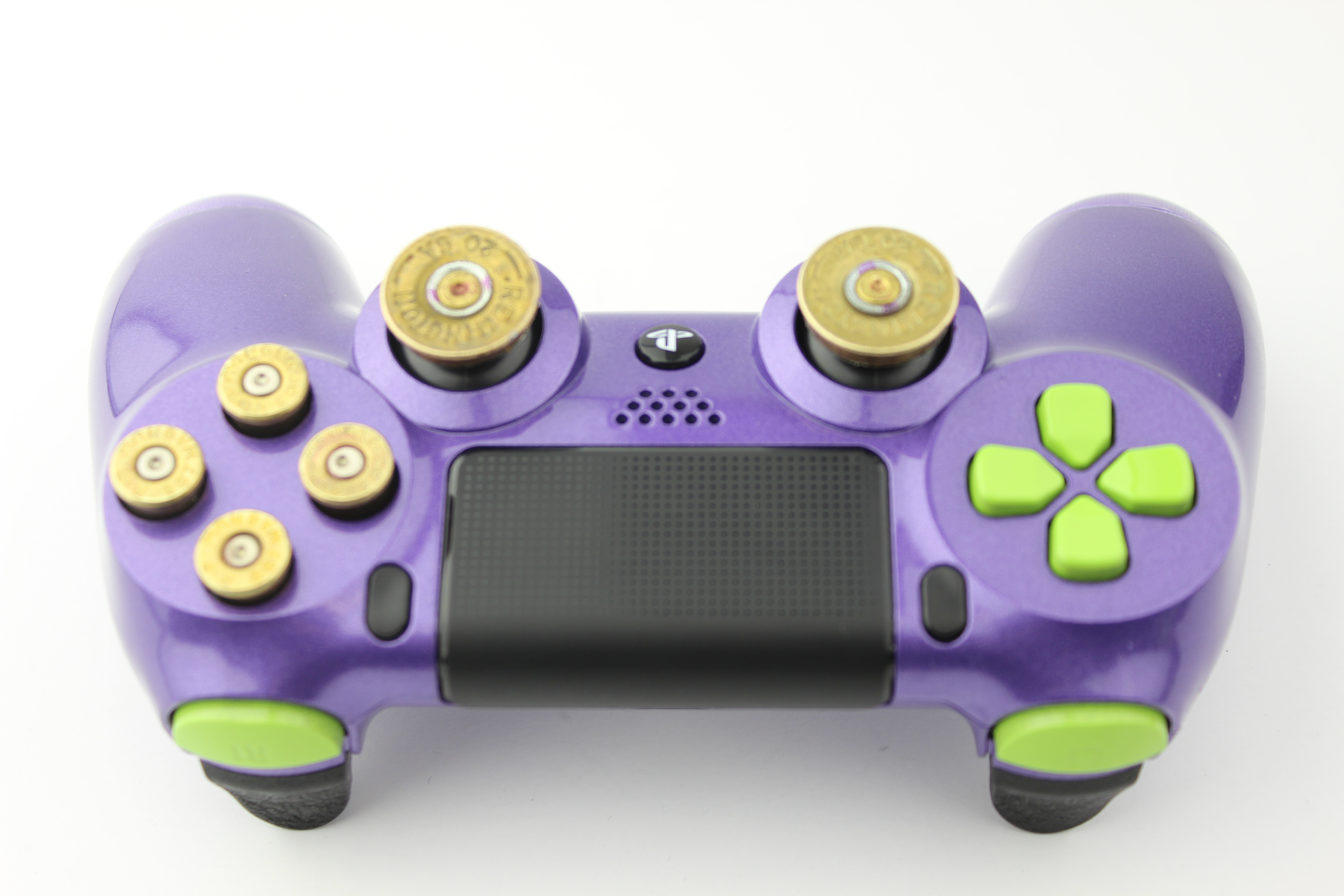 Metallic Purple and Green Bullet PlayStation 4 Controller photos and movies