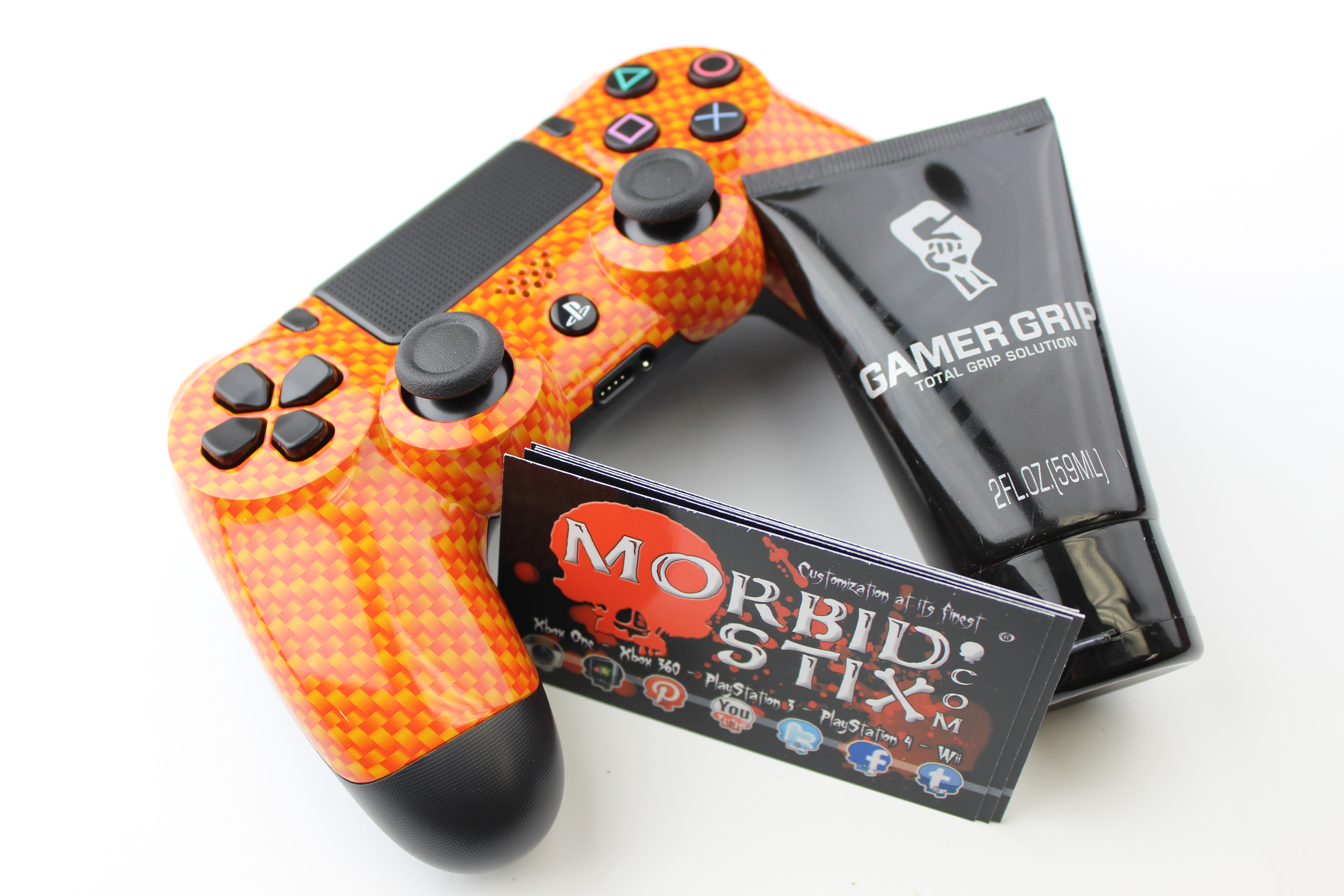 Bookmark and Share: Orange Pink and Gold Carbon Fiber PlayStation 4 Controller 1
