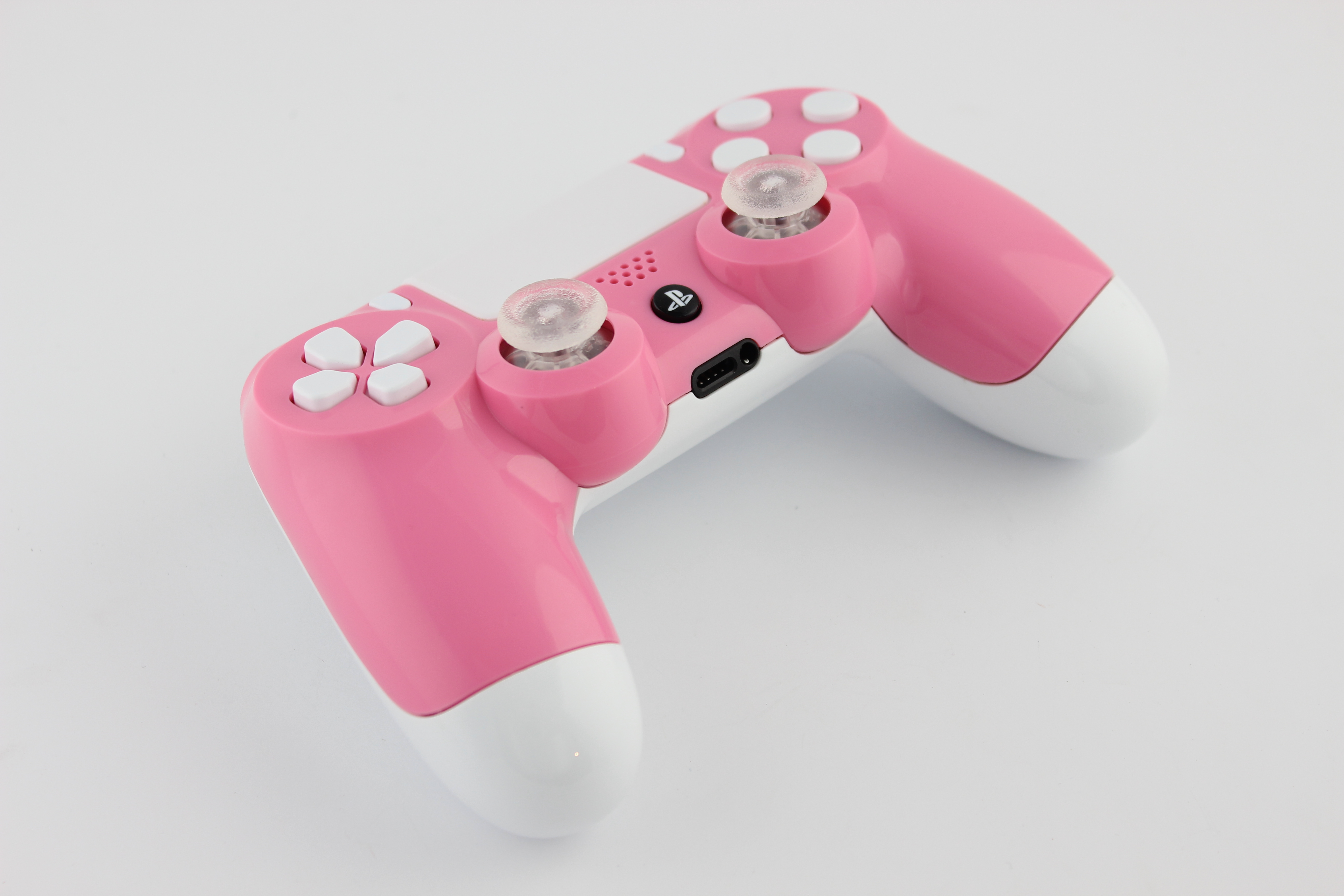 Pink Stock and White Lit PlayStation 4 Controller photos and movies