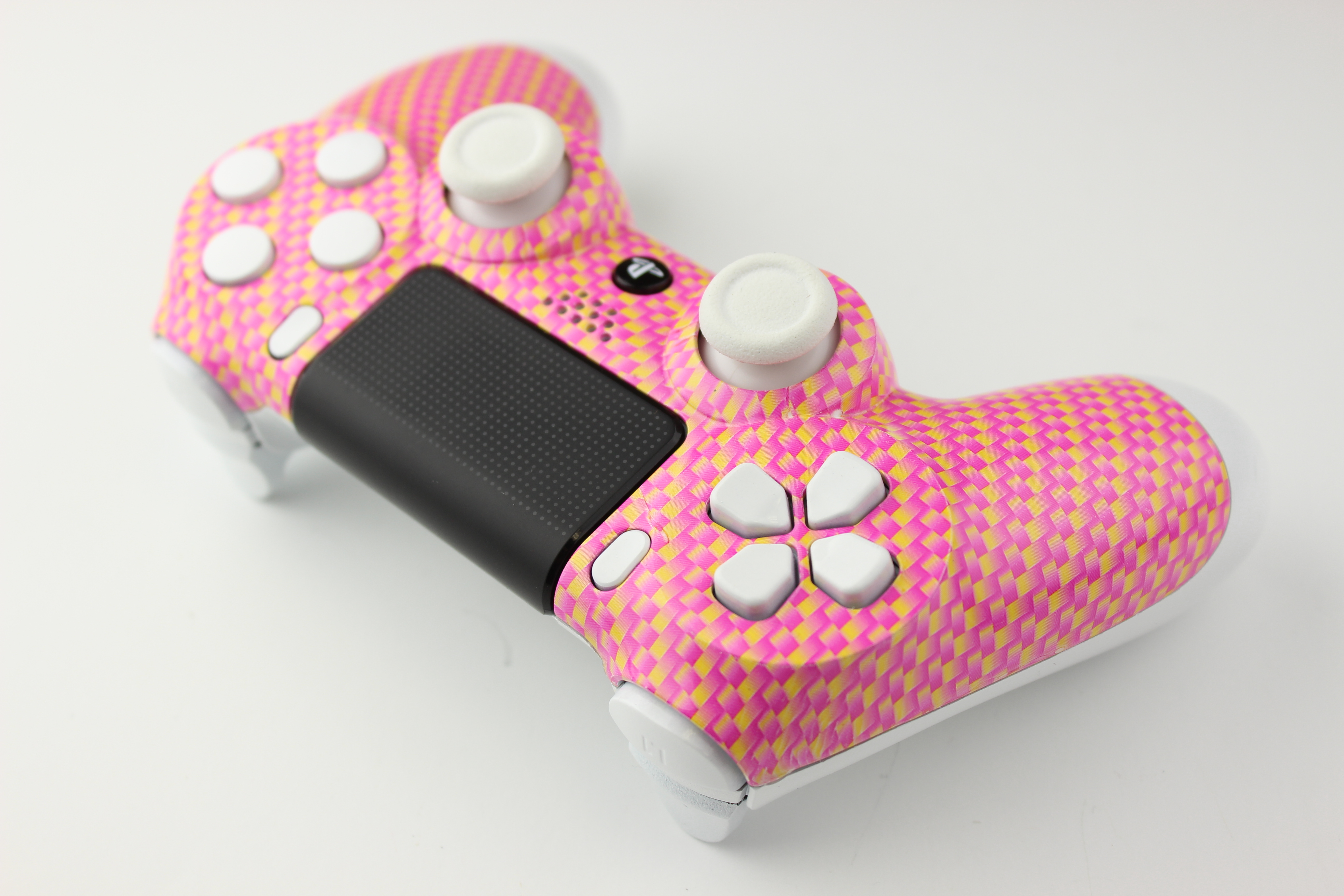 Pink and Gold Carbon Fiber and White PlayStation 4 Controller photos and movies