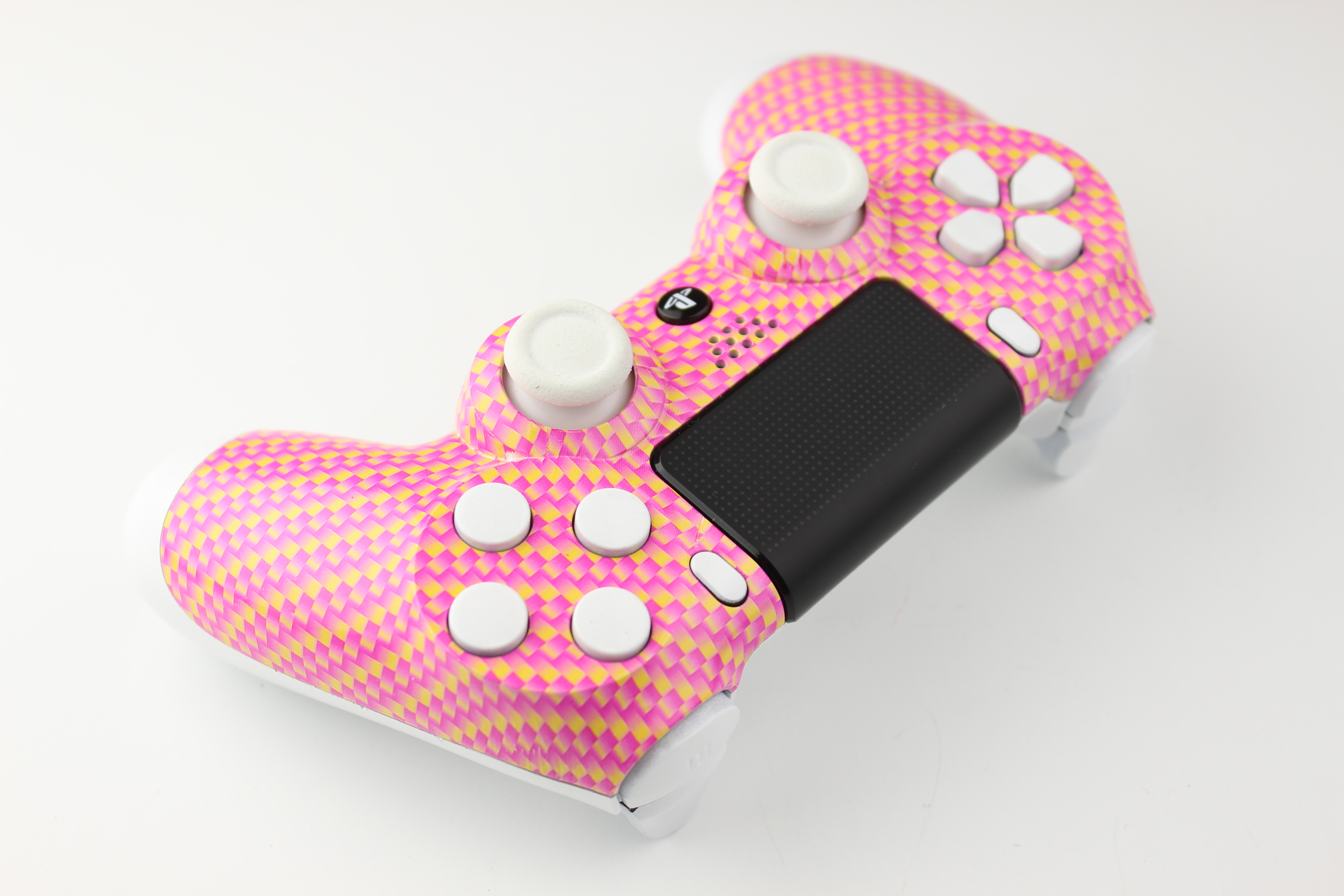 Pink and Gold Carbon Fiber and White PlayStation 4 Controller photos and movies