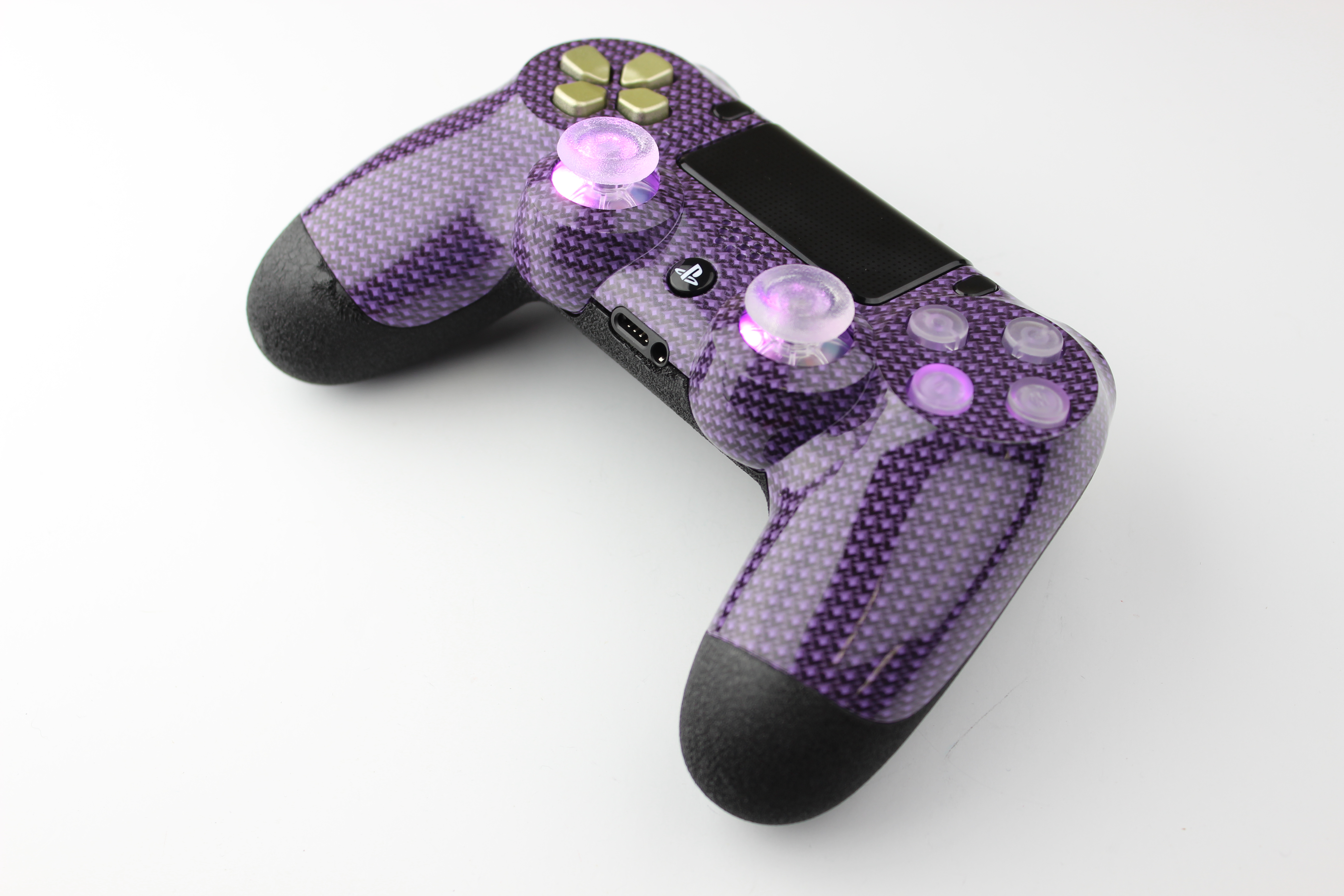 Purple Lit 2010 Carbon Fiber PlayStation 4 Controller photos and movies