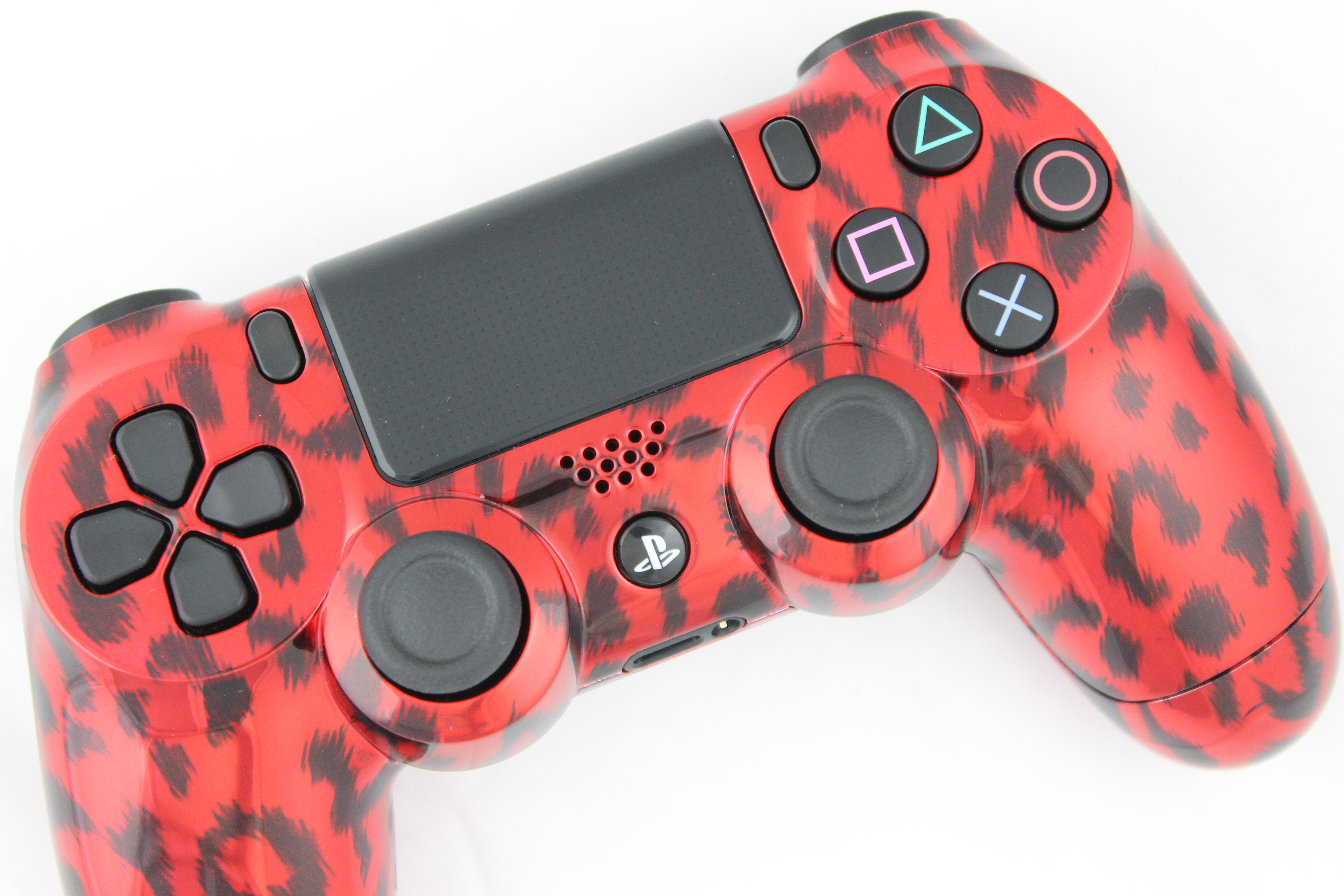 Red Chrome Naughty Leopard PlayStation 4 Controller photos and movies