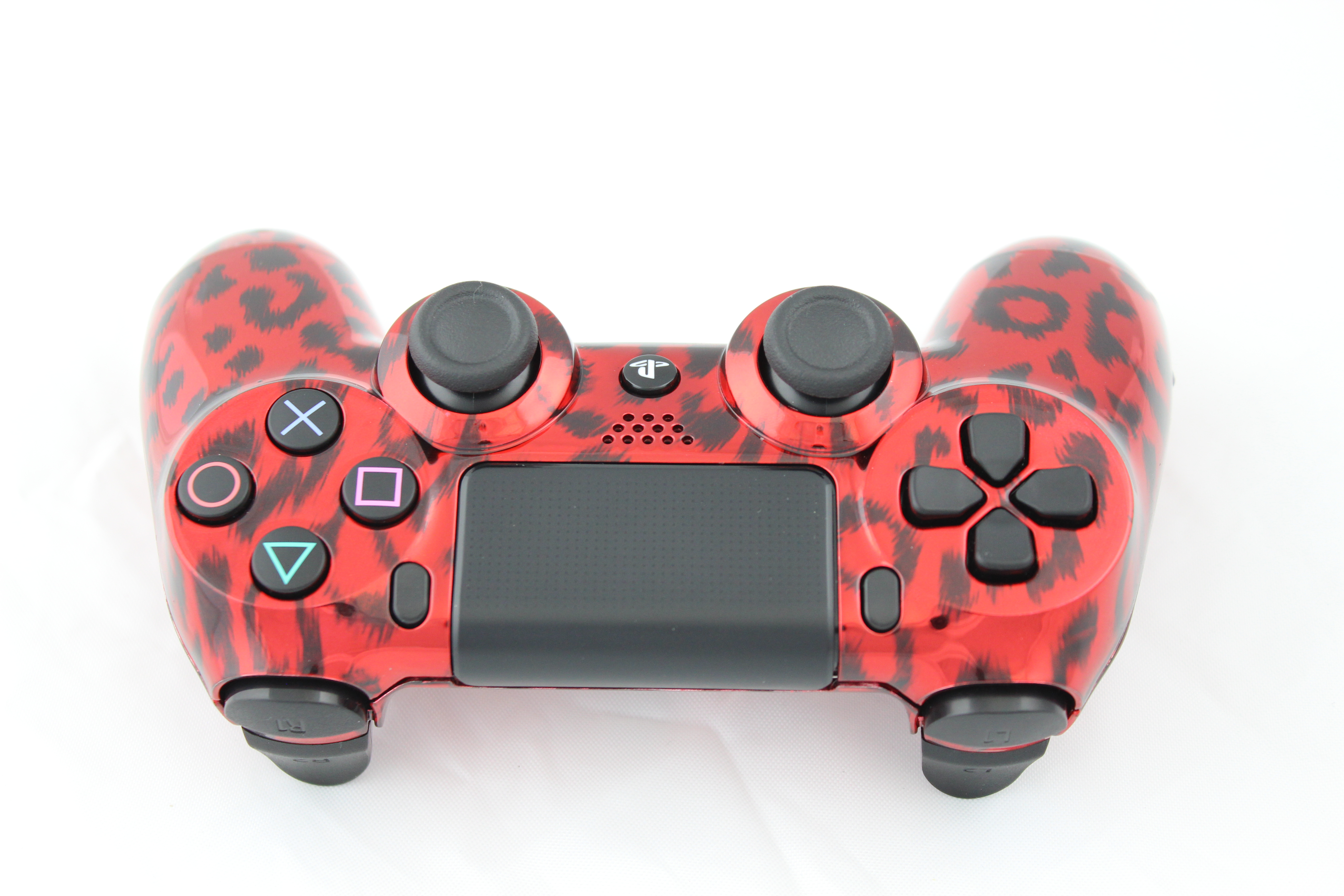 Red Chrome Naughty Leopard PlayStation 4 Controller photos and movies
