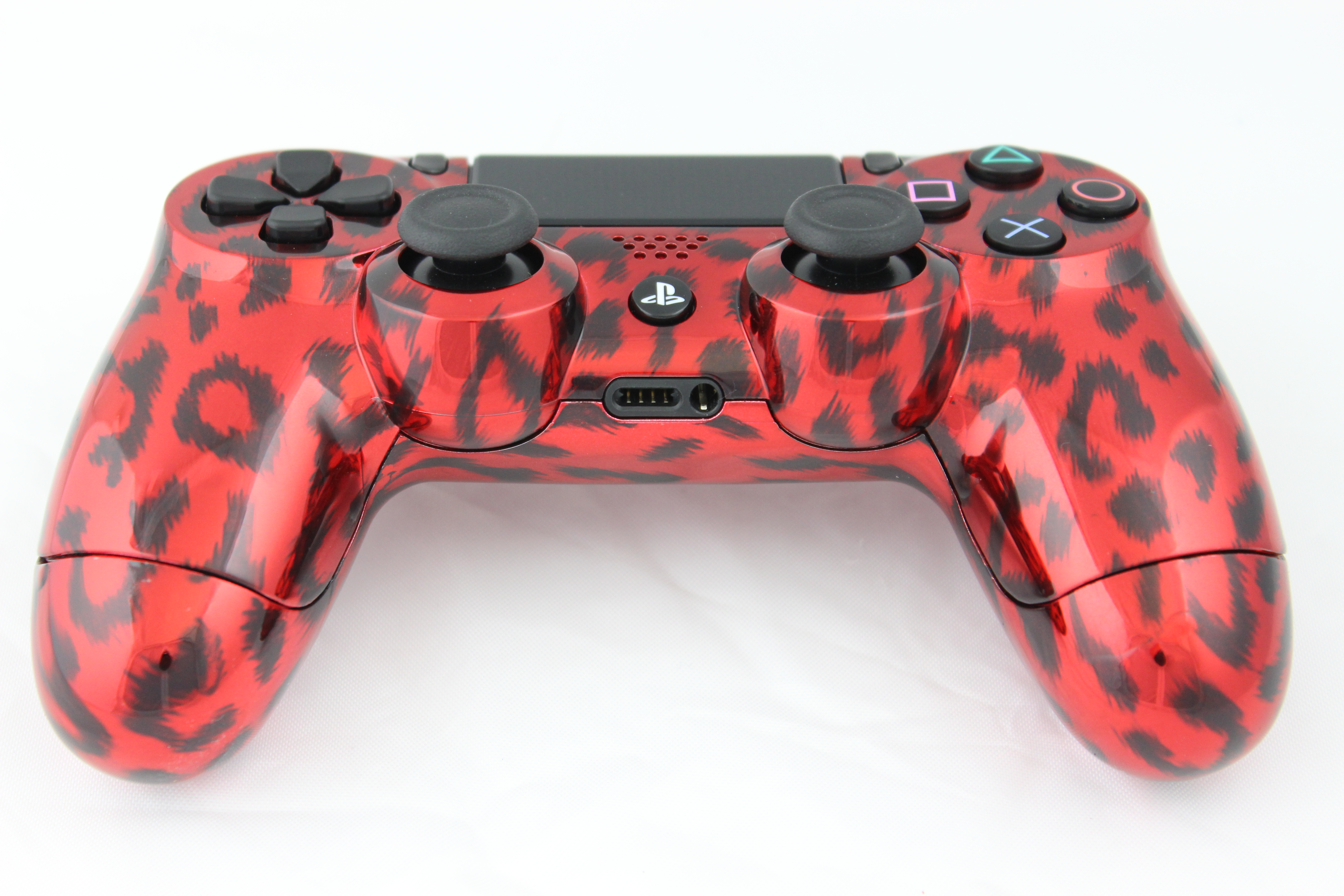 Red Chrome Naughty Leopard PlayStation 4 Controller photos and movies