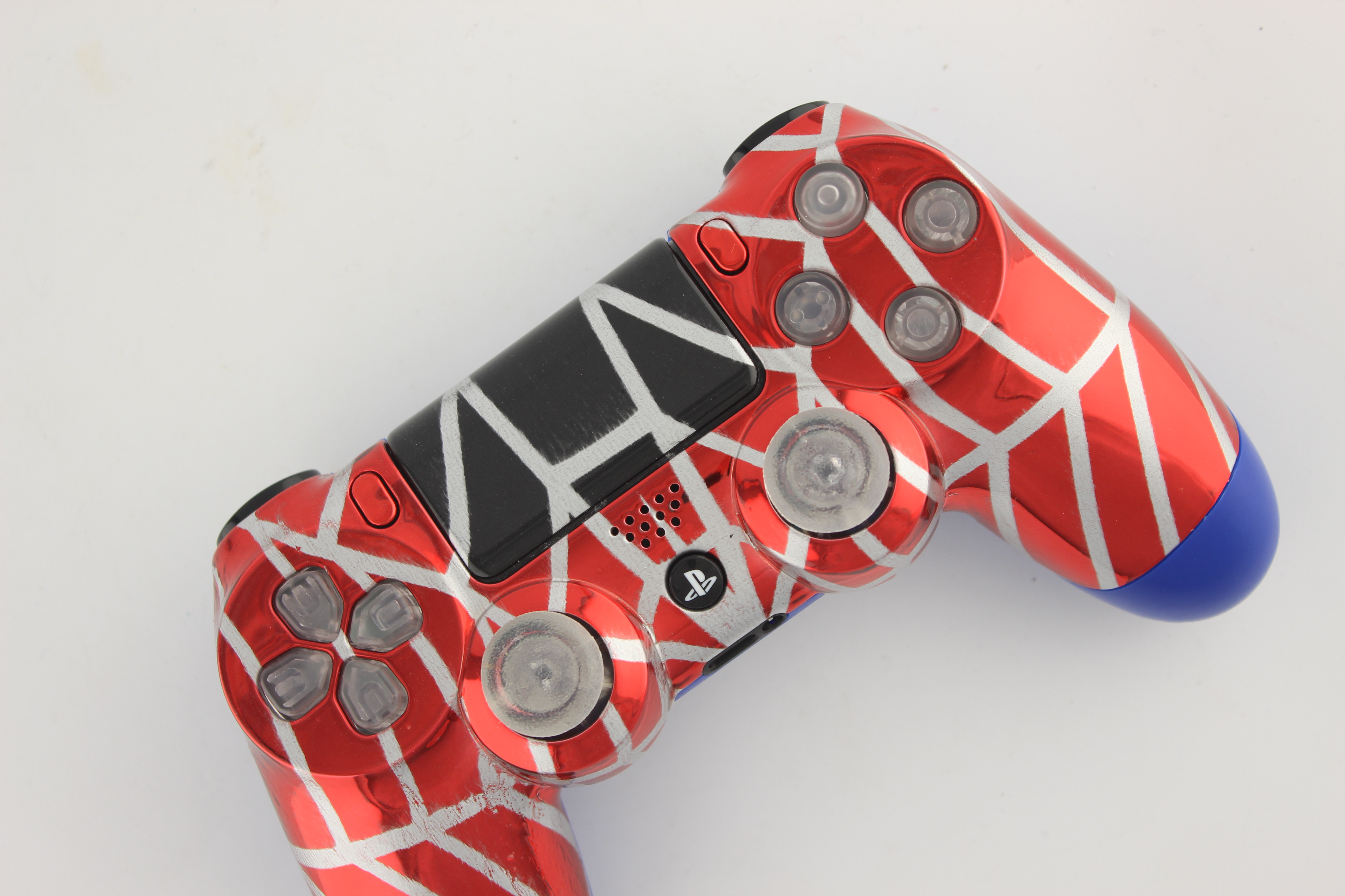 Red Chrome Silver Webs Lit PlayStation 4 Controller photos and movies