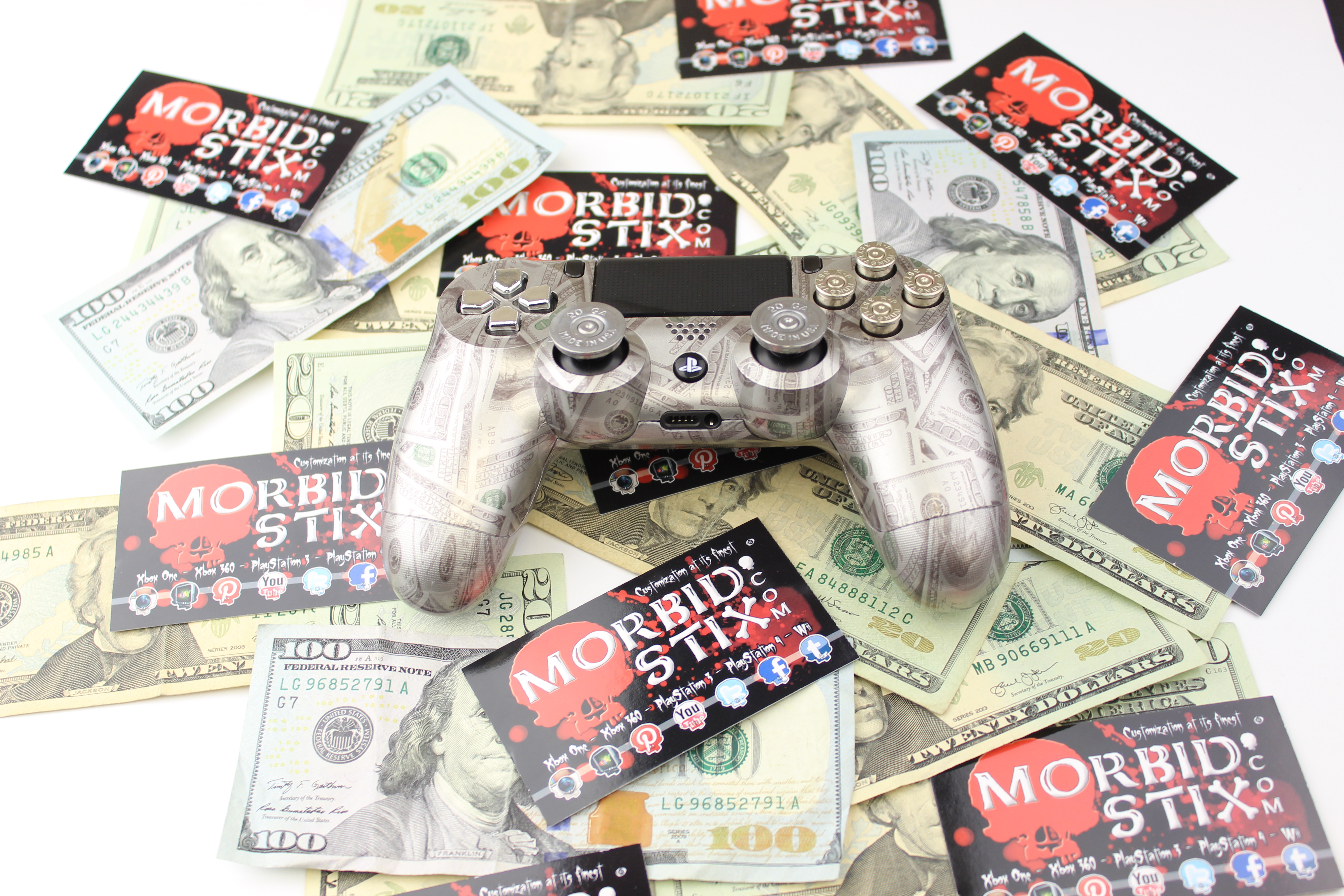 Silver 100 Bills PlayStation 4 Controller photos and movies
