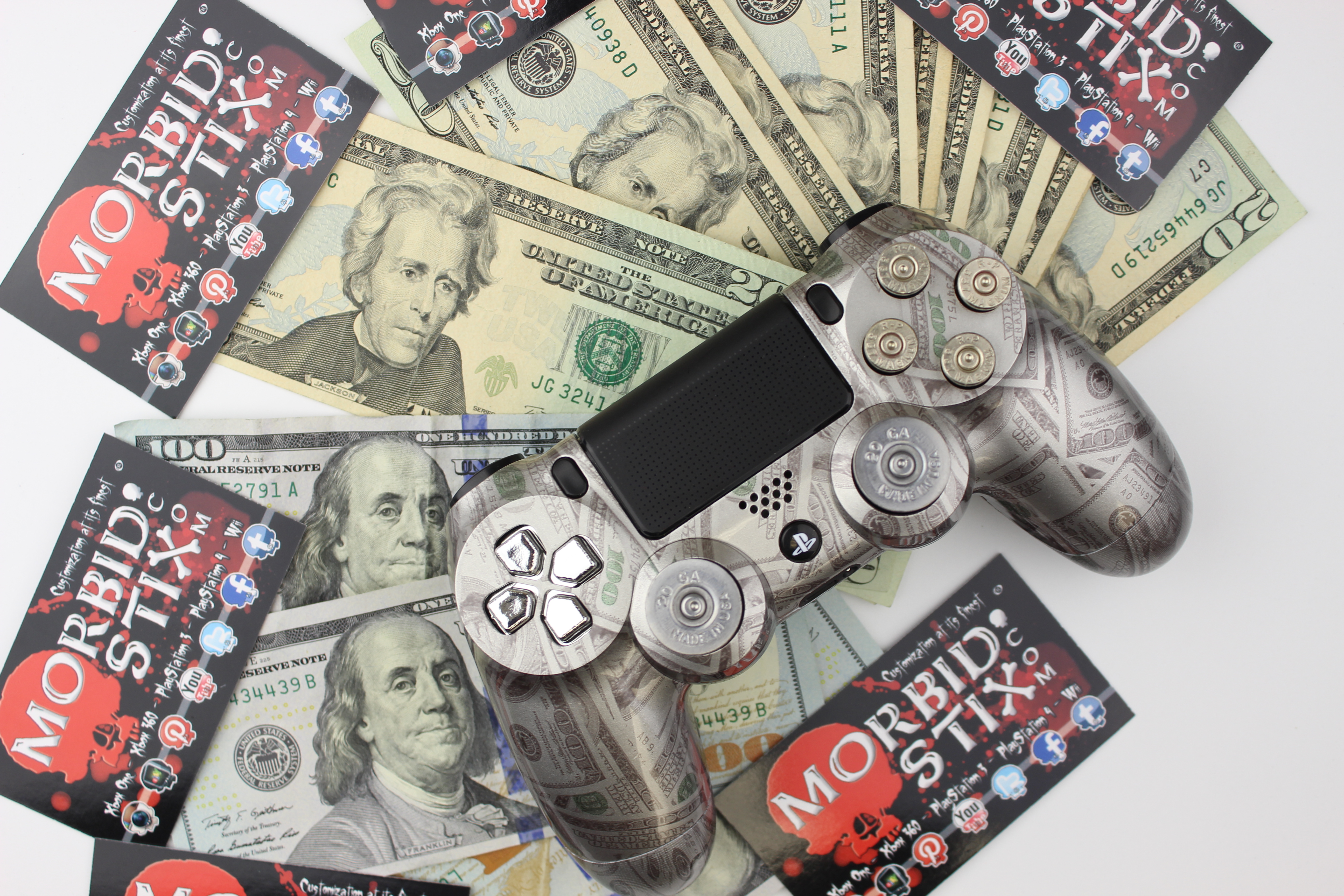 Silver 100 Bills PlayStation 4 Controller photos and movies