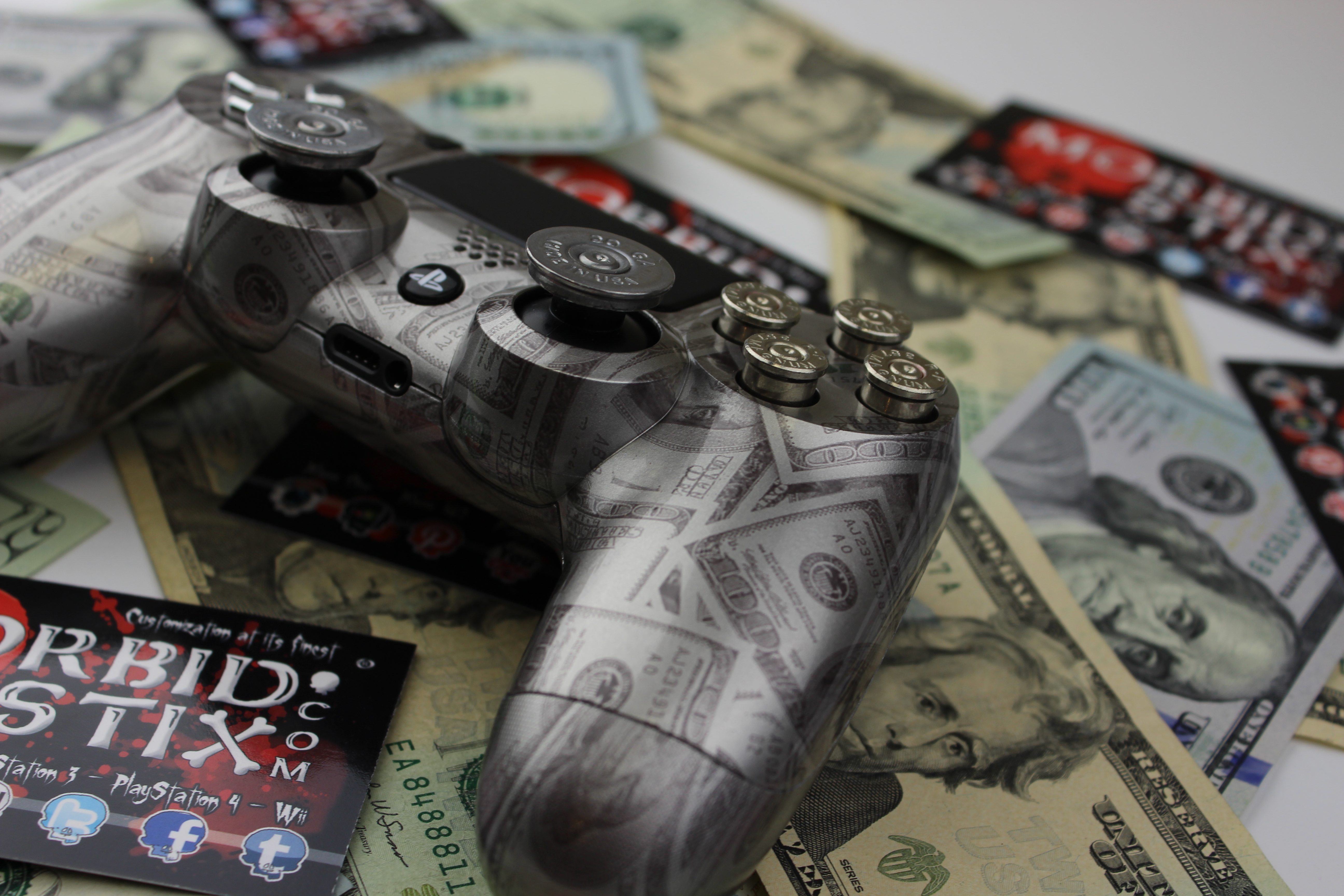 Silver 100 Bills PlayStation 4 Controller photos and movies