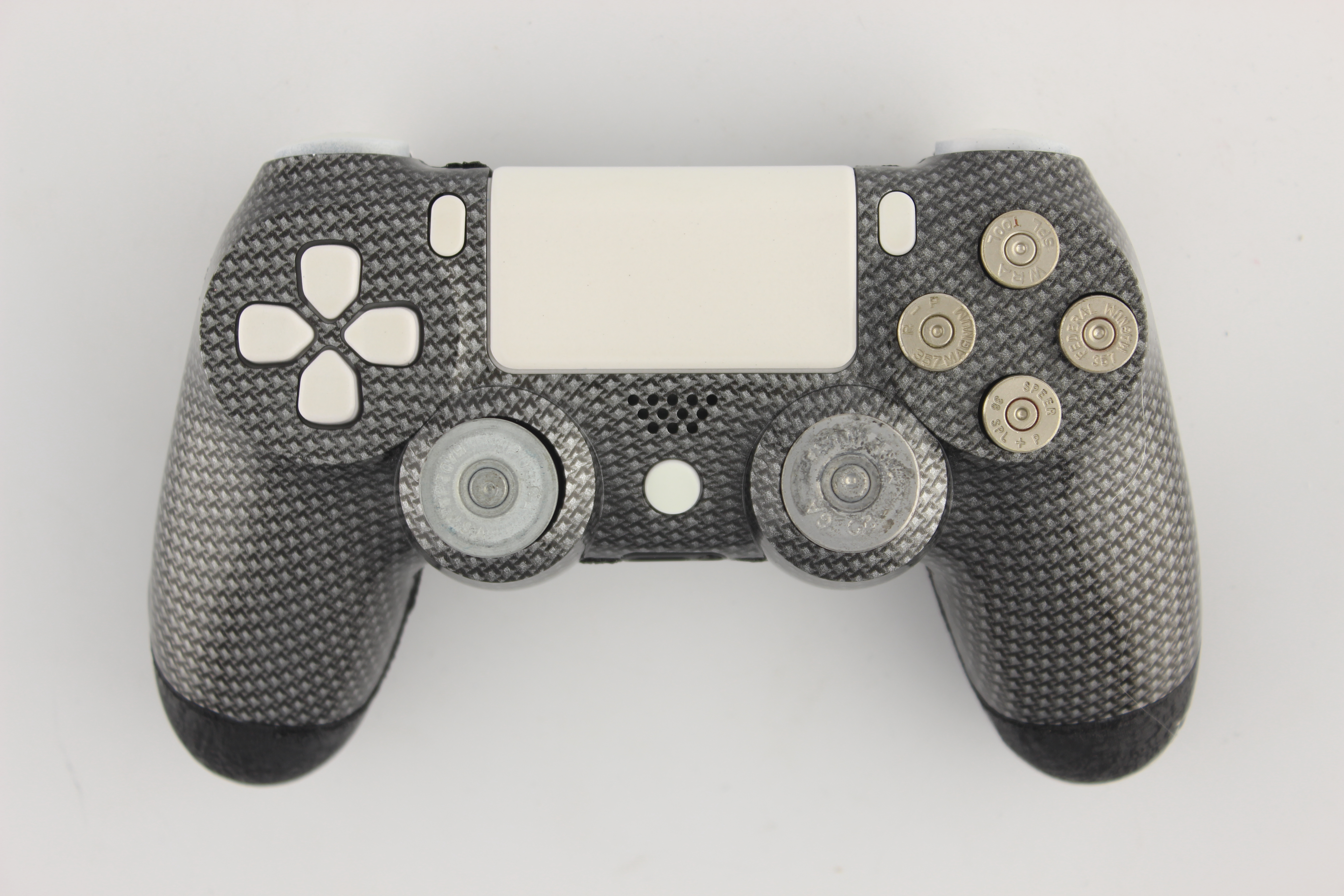Bookmark and Share: Silver Gun Metal and White PlayStation 4 Controller with Bullet Buttons 11