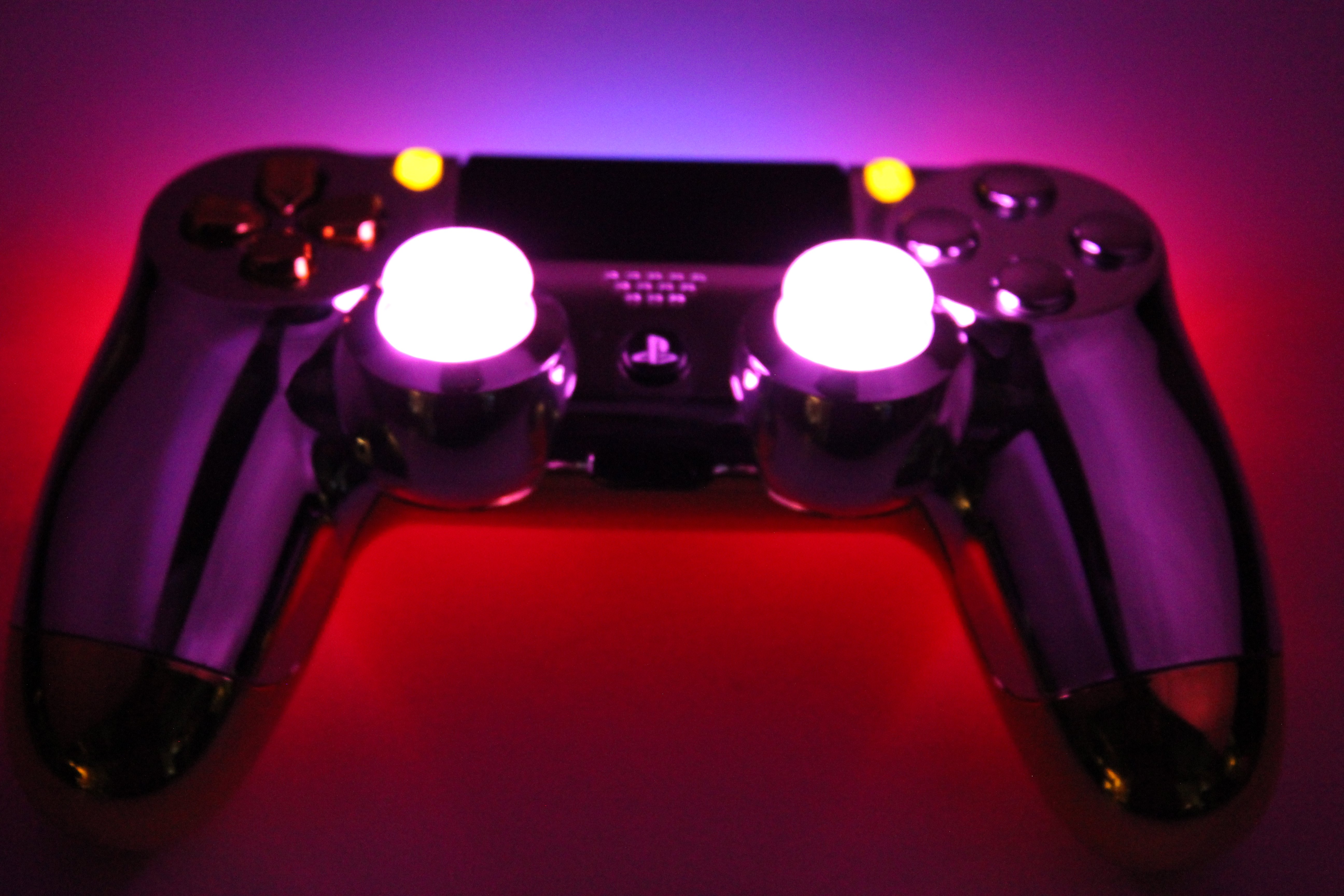 Silver and Gold Lit PlayStation 4 Controller photos and movies