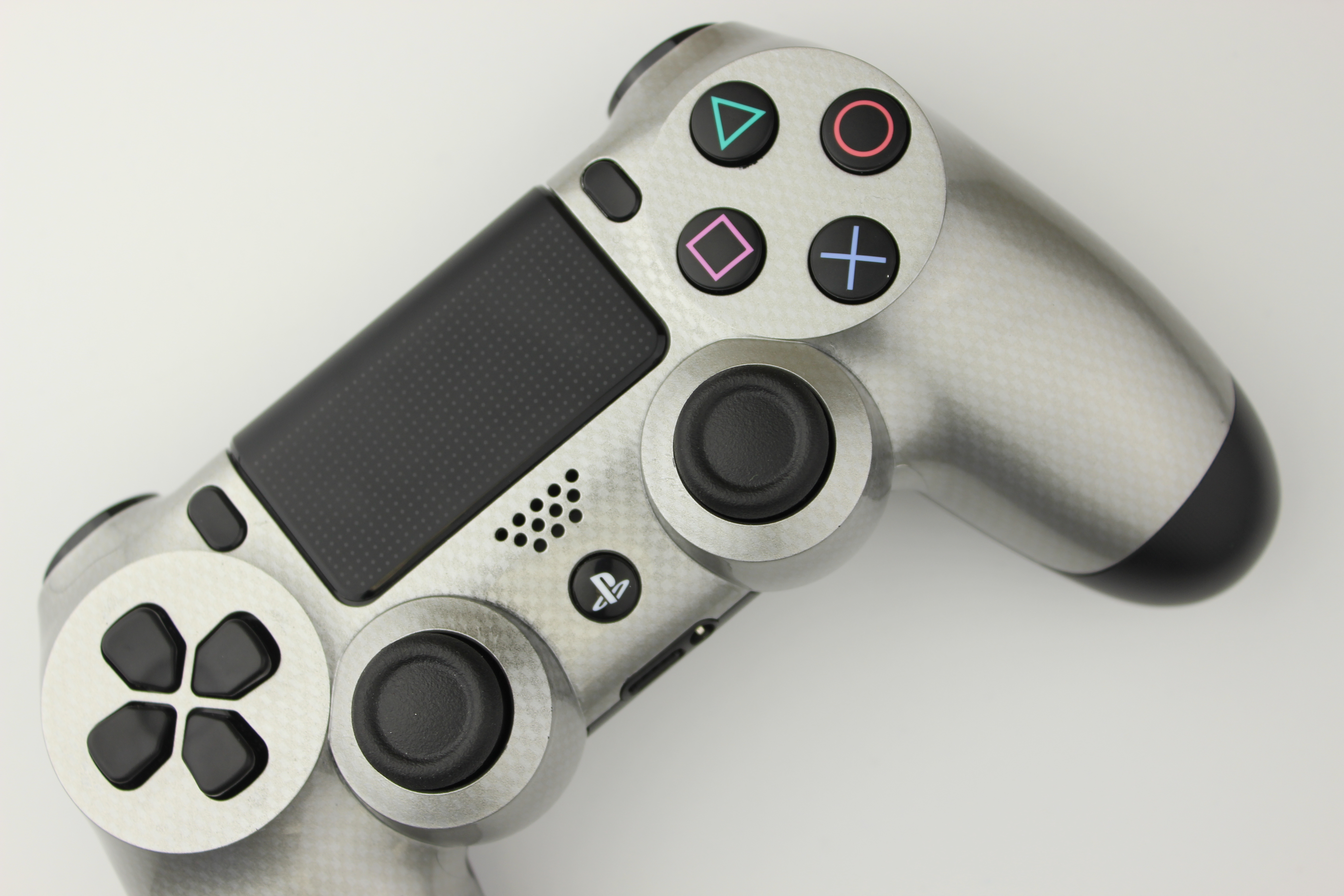 Silver and Silver Micro Check Carbon Fiber PlayStation 4 Controller photos and movies