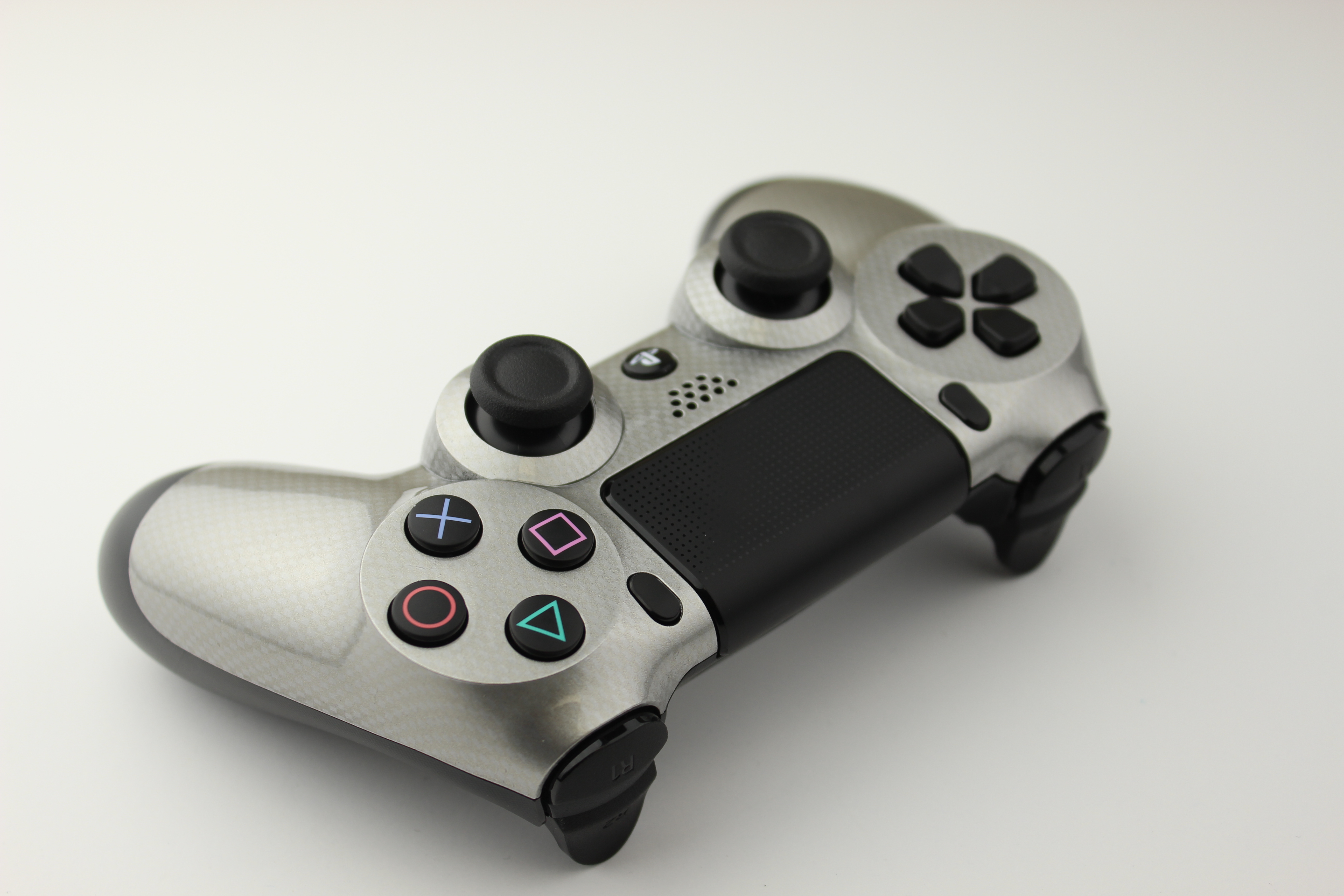 Silver and Silver Micro Check Carbon Fiber PlayStation 4 Controller photos and movies