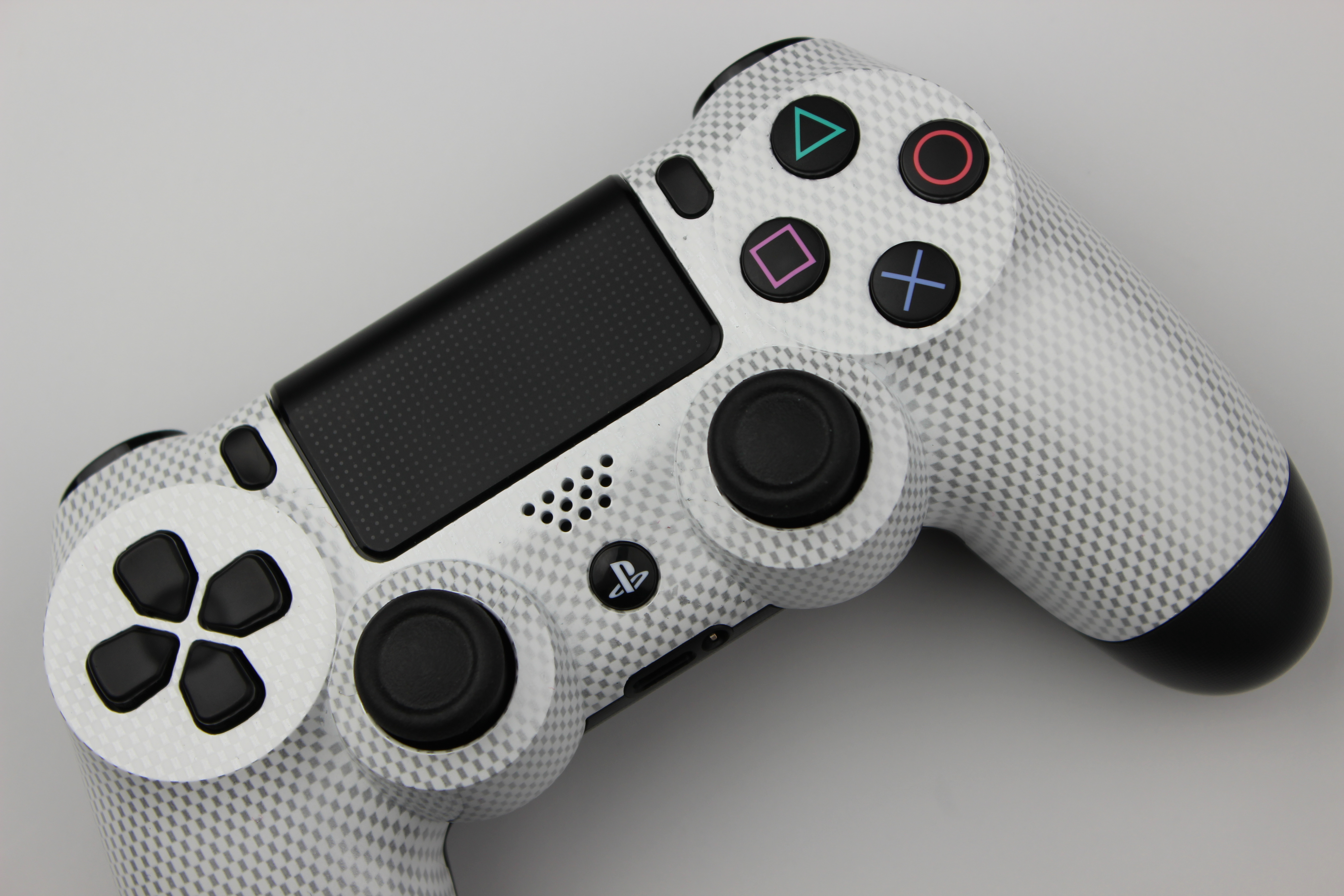 White and Silver Micro Check Carbon Fiber PlayStation 4 Controller photos and movies