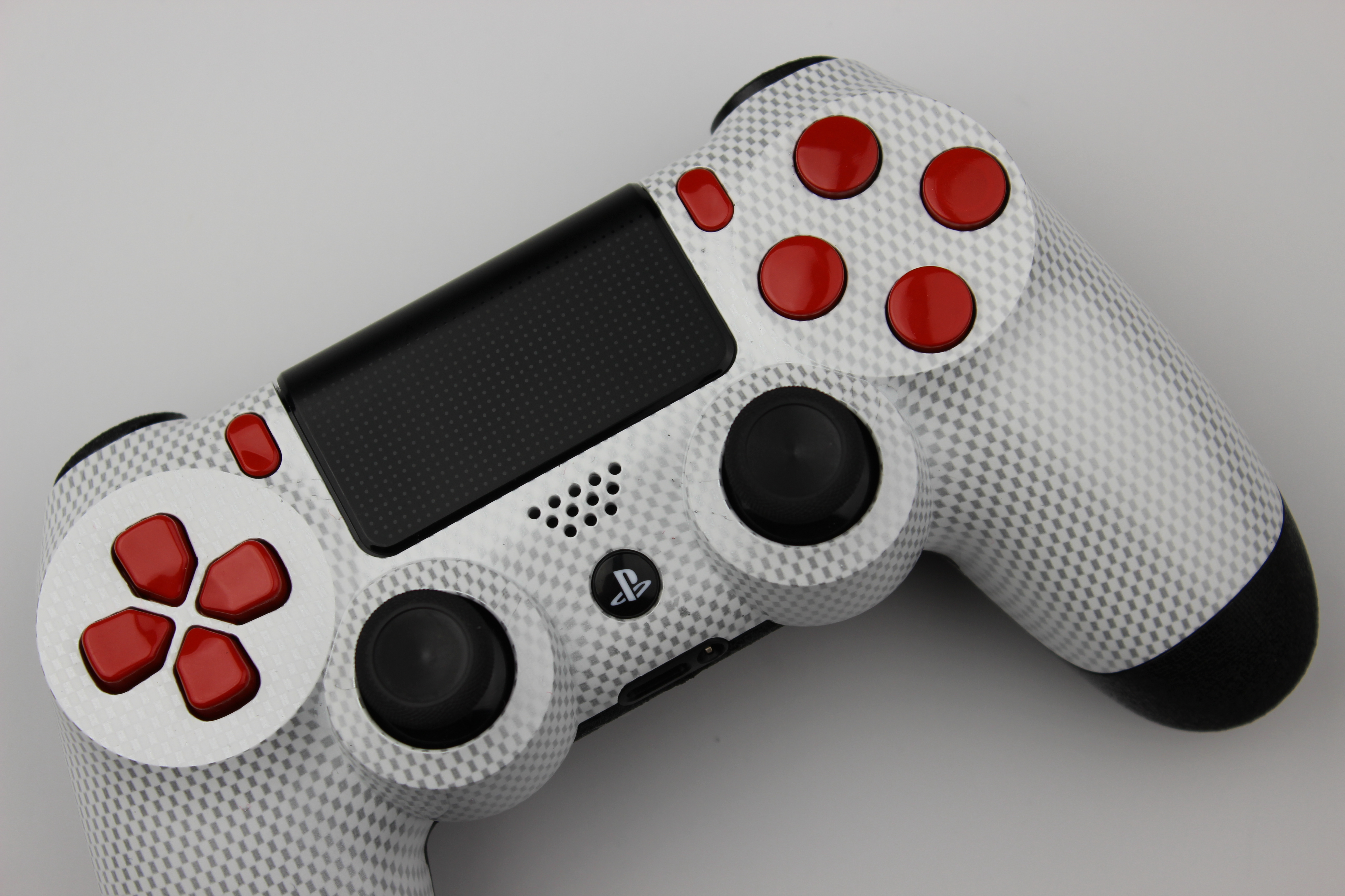White and Silver Micro Check Carbon Fiber PlayStation 4 Controller photos and movies