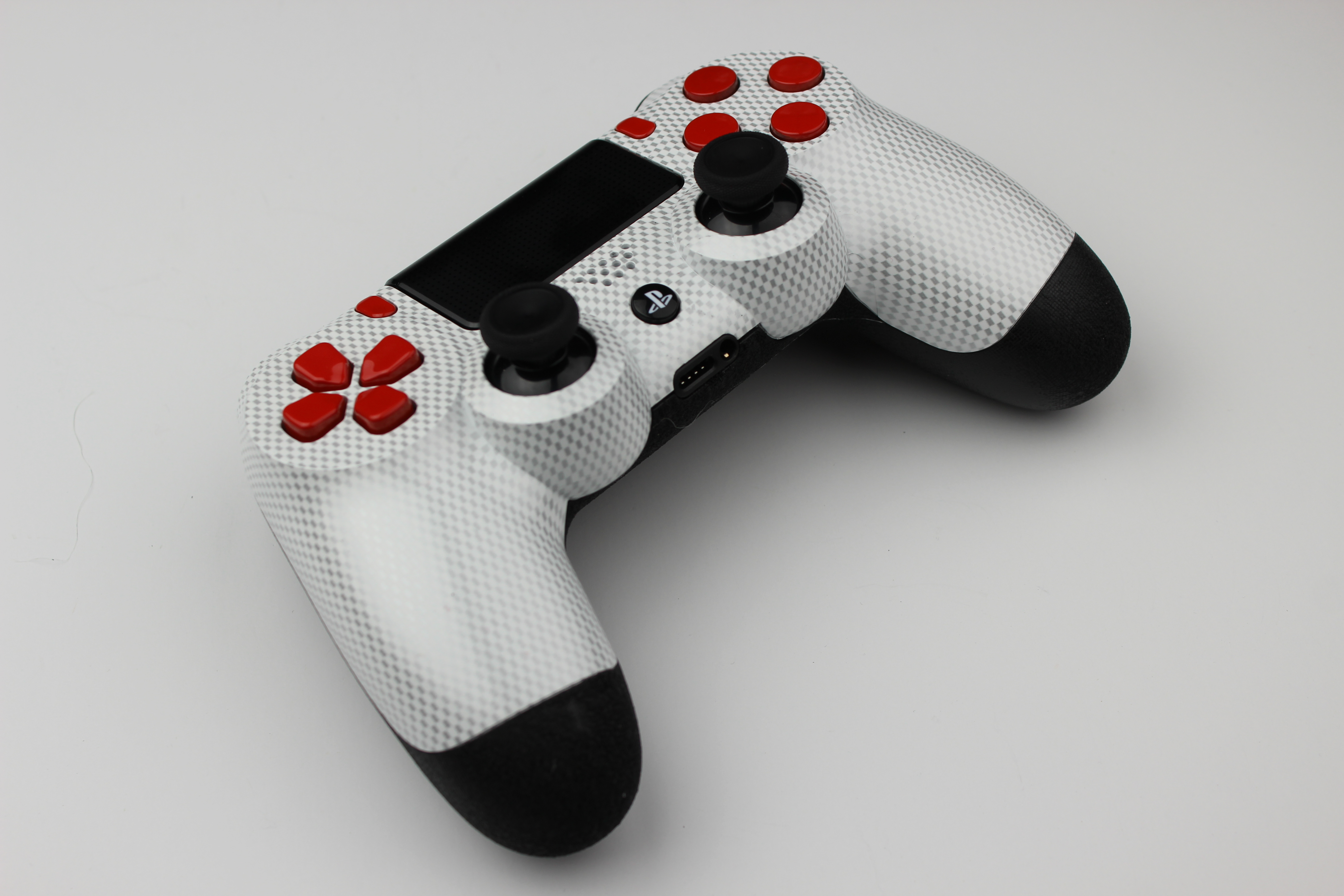 White and Silver Micro Check Carbon Fiber PlayStation 4 Controller photos and movies