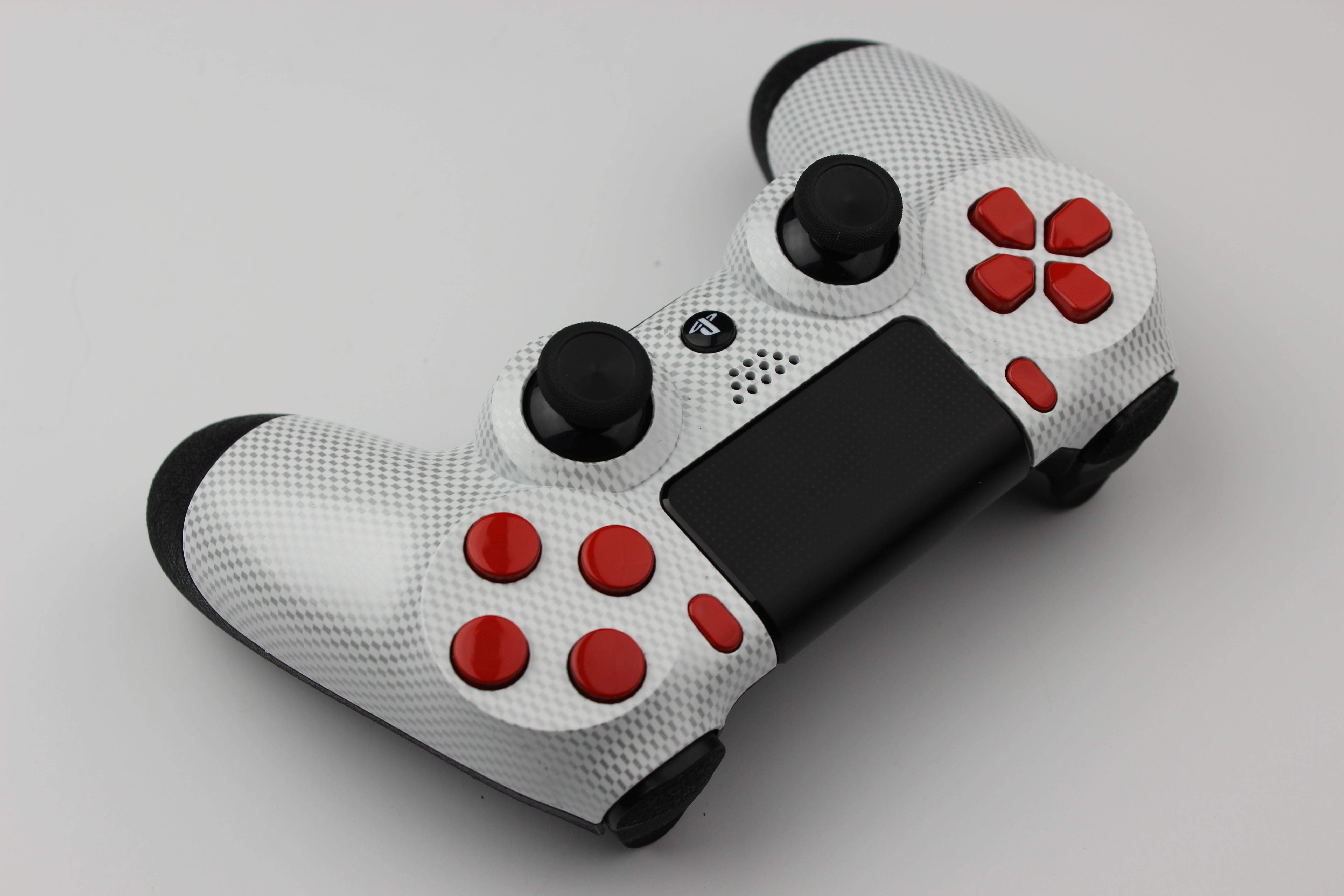 White and Silver Micro Check Carbon Fiber PlayStation 4 Controller photos and movies