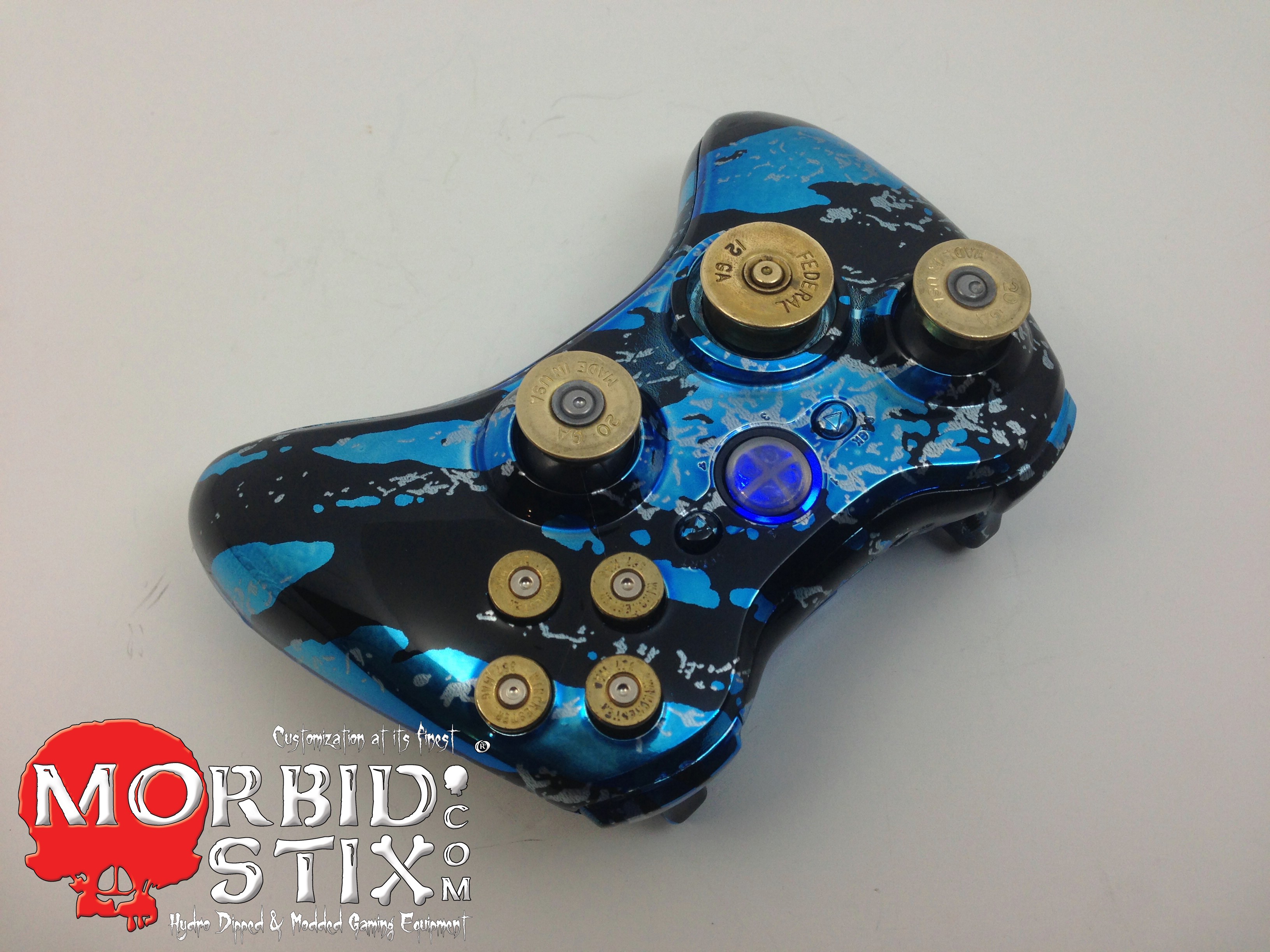 Blue Chrome Savage Camo Custom Xbox 360 Controller WTP-200 photos and movies