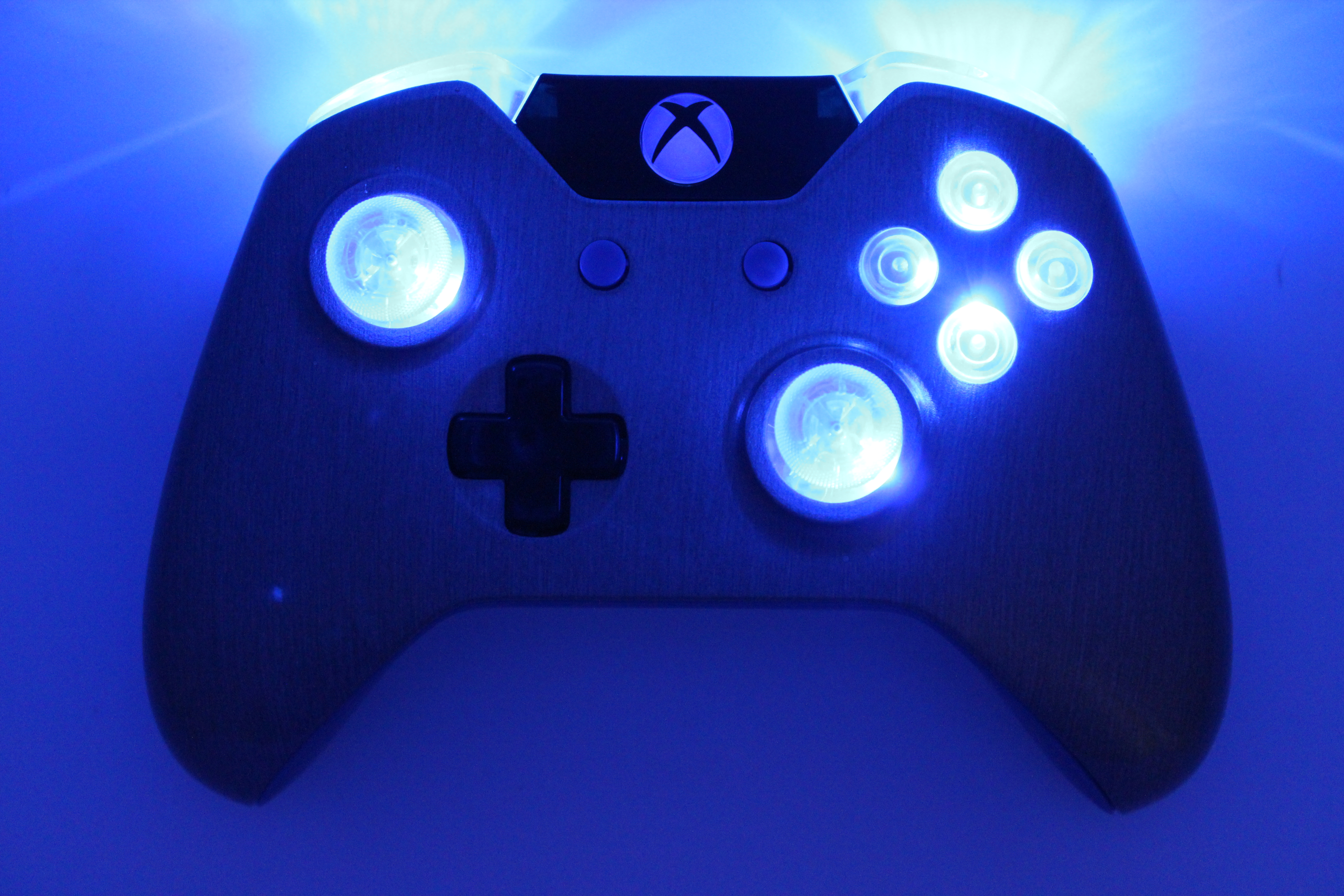 Blue Lit Brushed Aluminum Xbox One Controller photos and movies