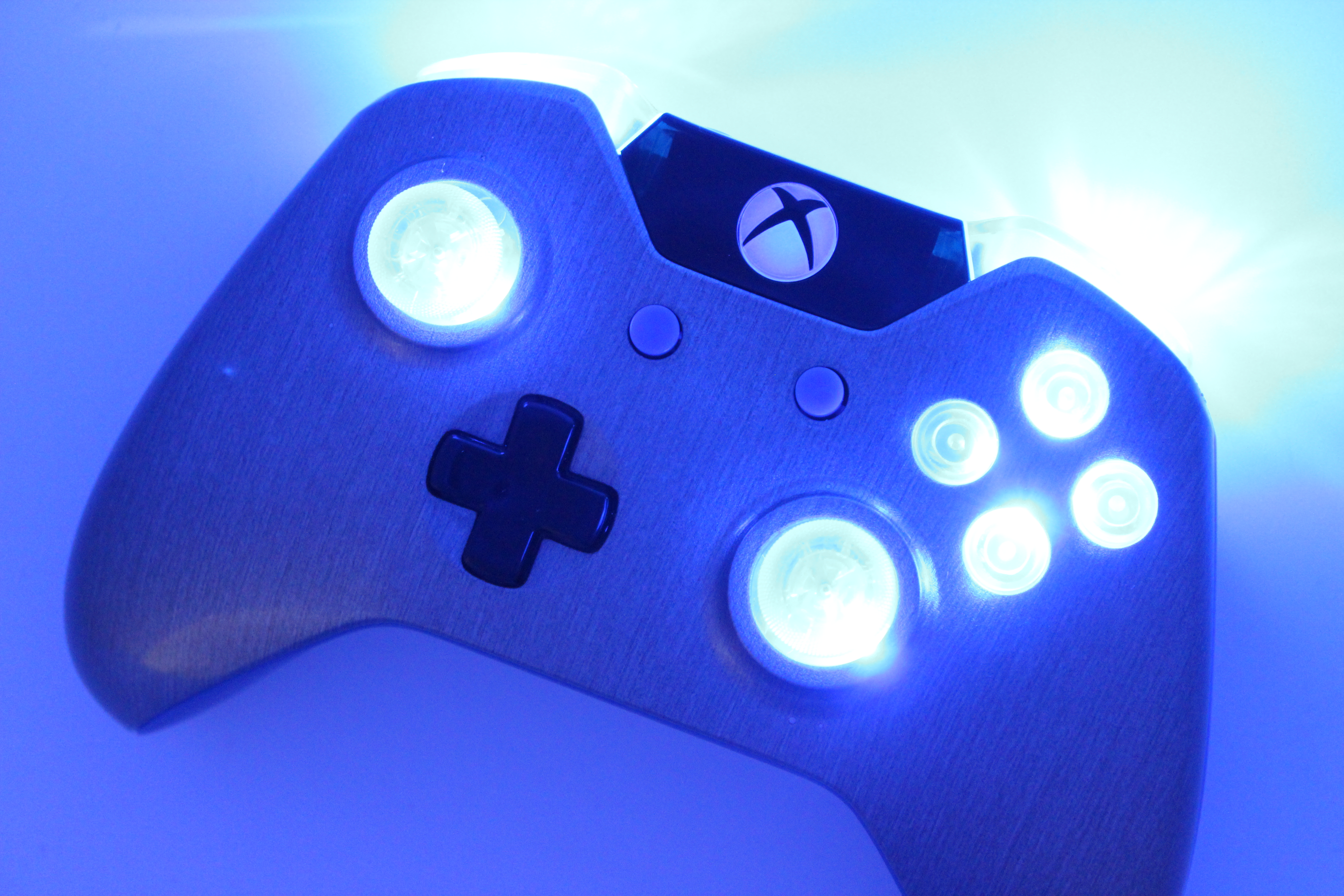 Blue Lit Brushed Aluminum Xbox One Controller 9
