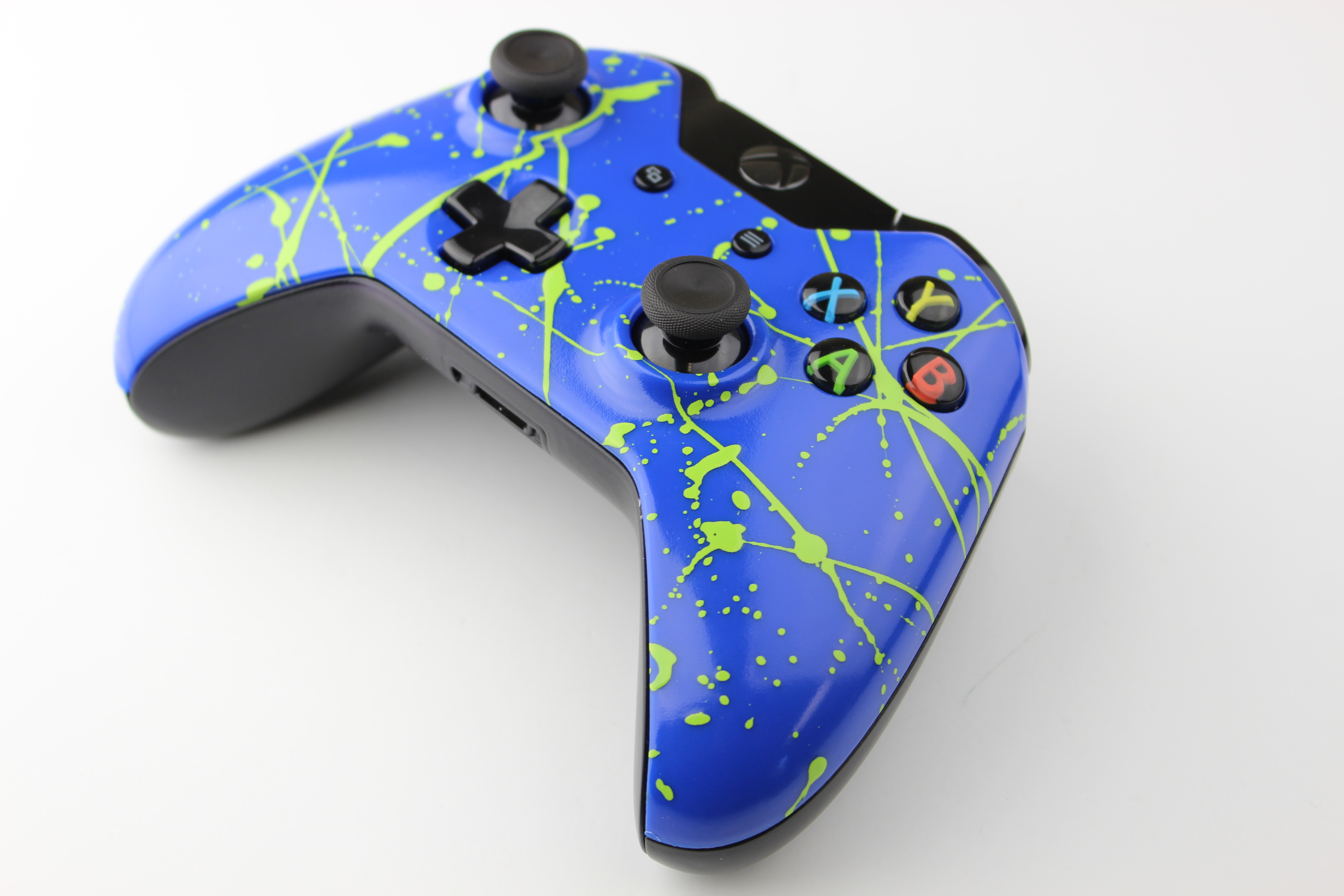 Blue Xbox One Controller with Green Splatter photos and movies