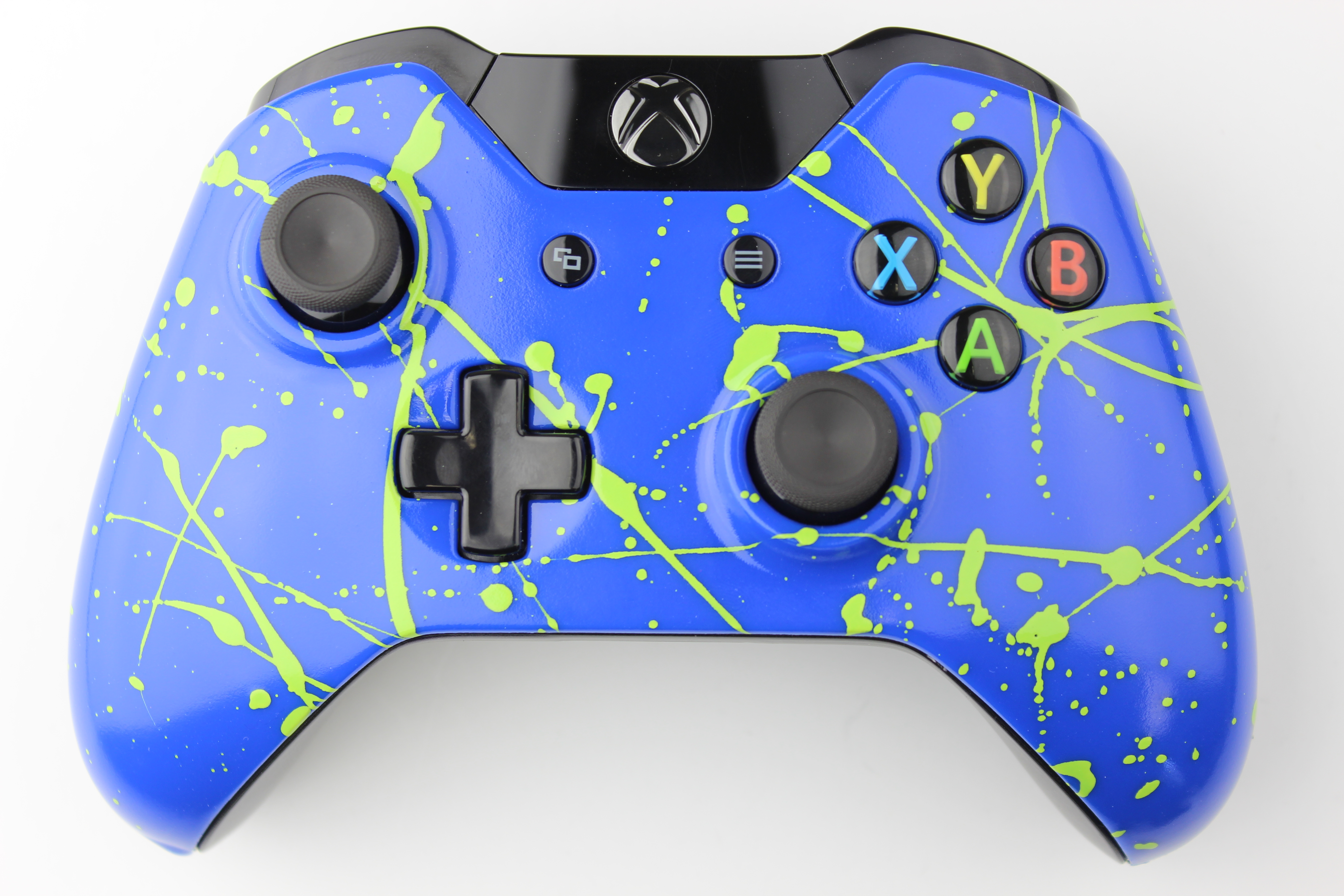 Blue Xbox One Controller with Green Splatter photos and movies