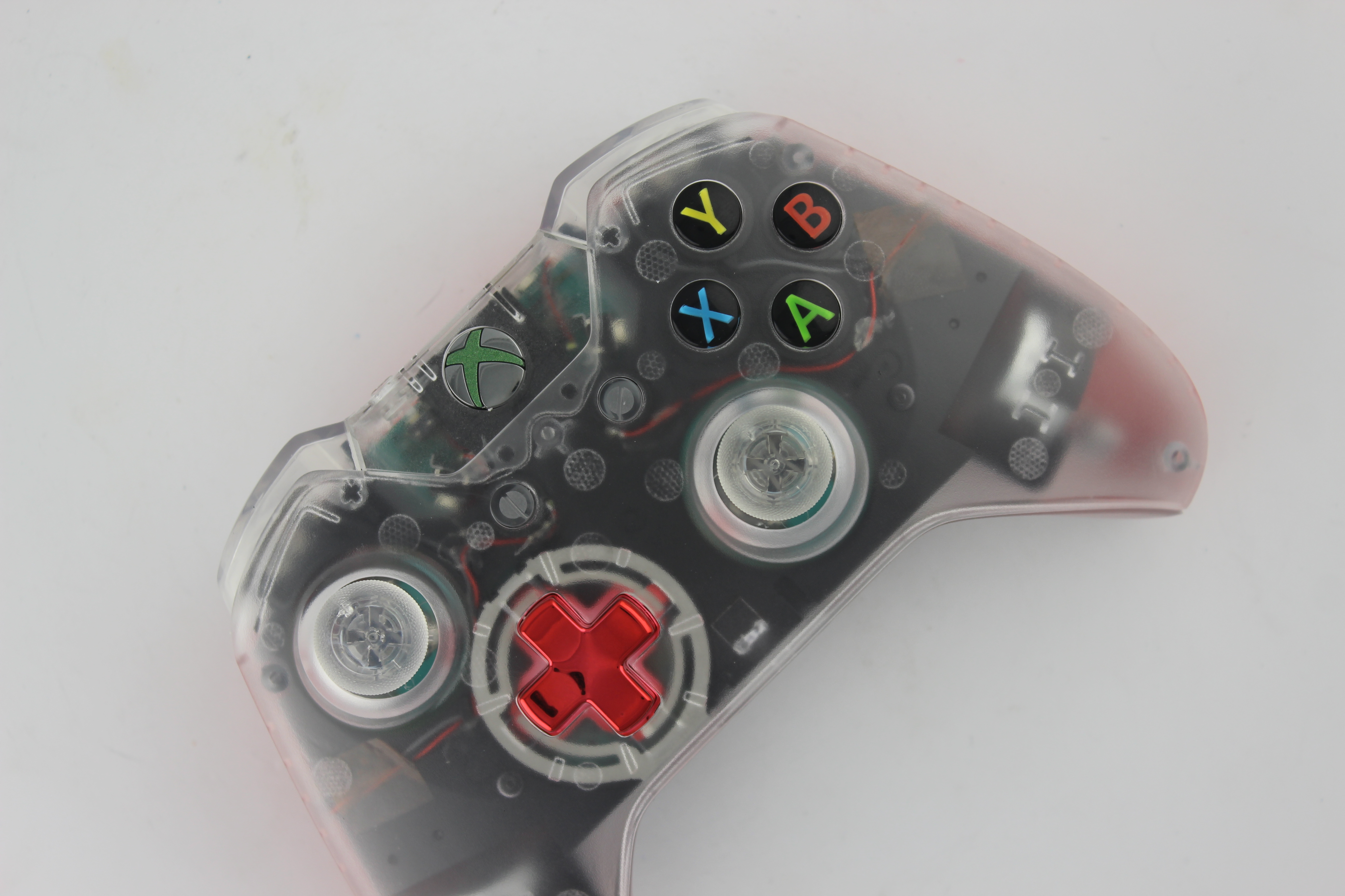 Clear and Red Chrome Xbox One Controller photos and movies