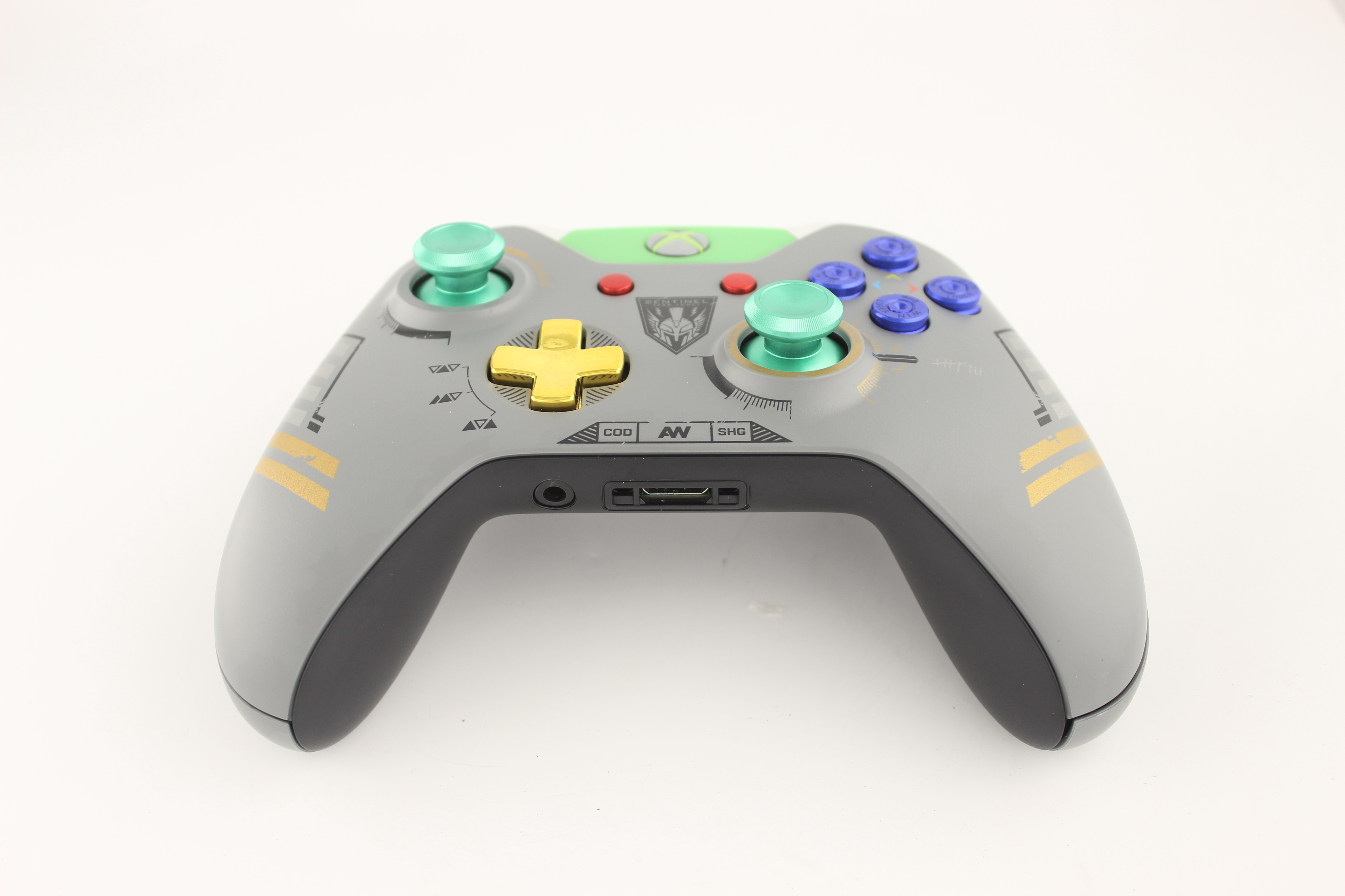 Custom Advanced Warfare Xbox One Controller with Green Metal Sticks 12