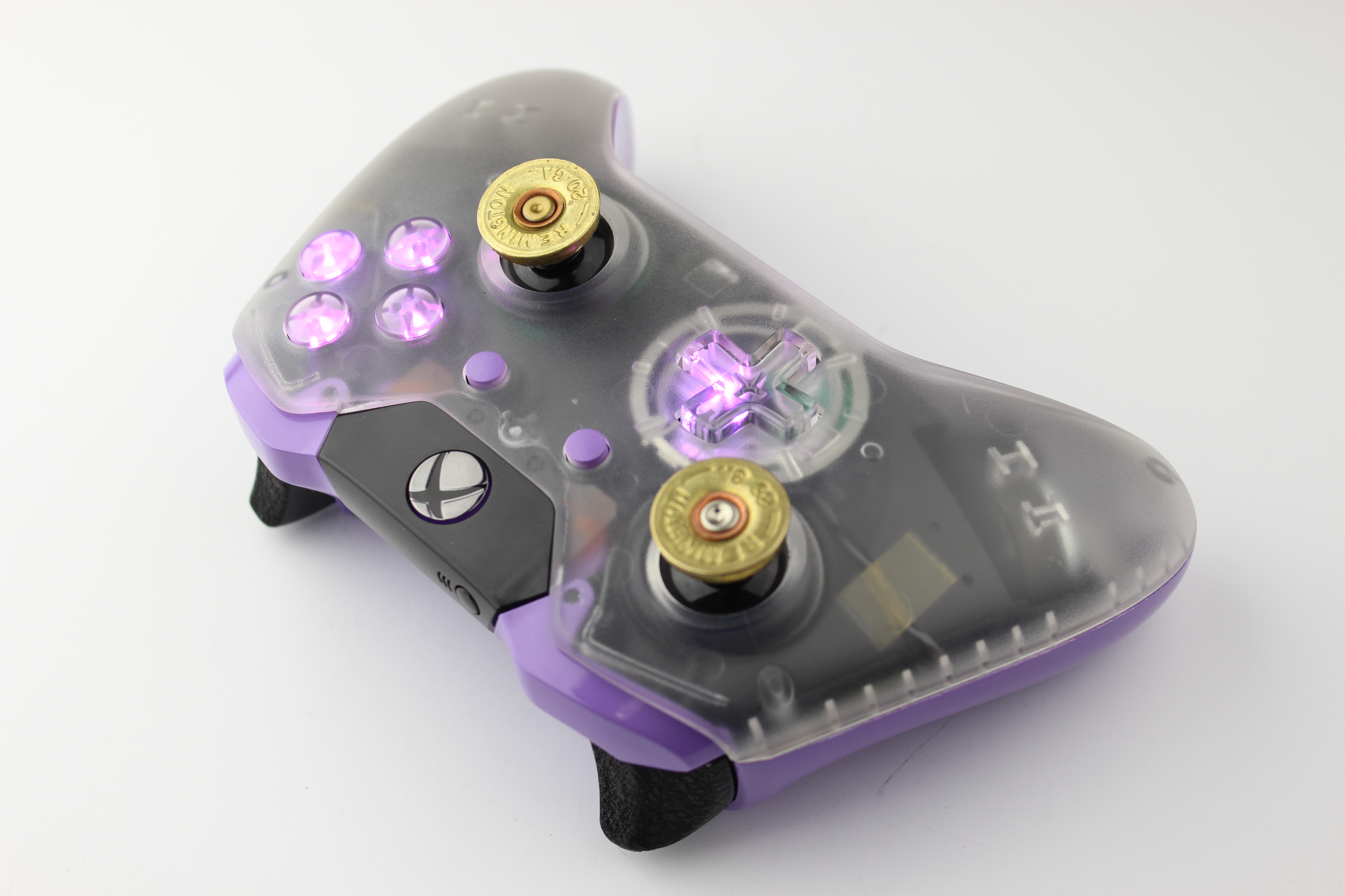 Custom Clear and Lit Purple Xbox One Controller photos and movies