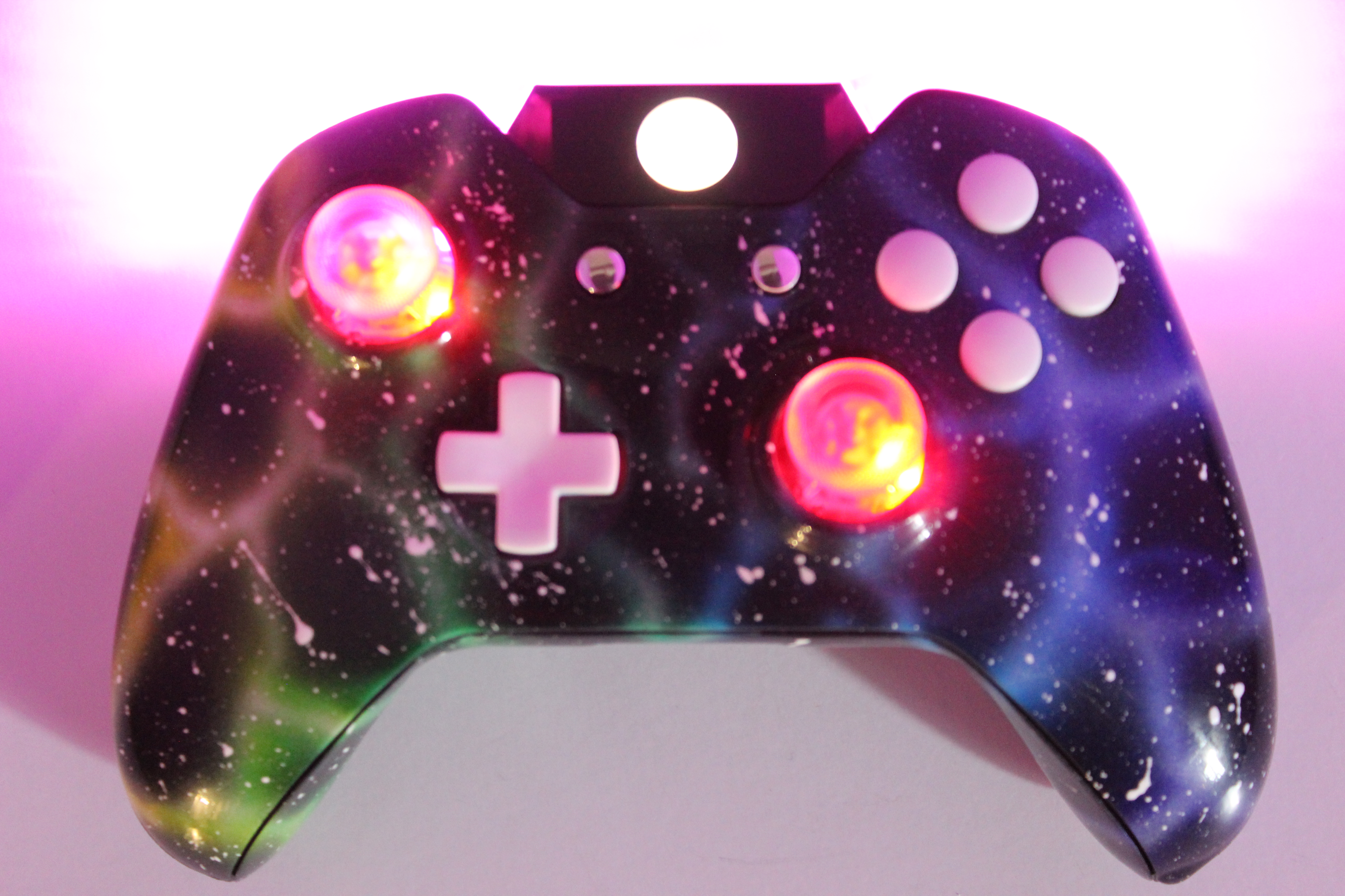 Custom White and Lit Nebula Xbox One Controller photos and movies