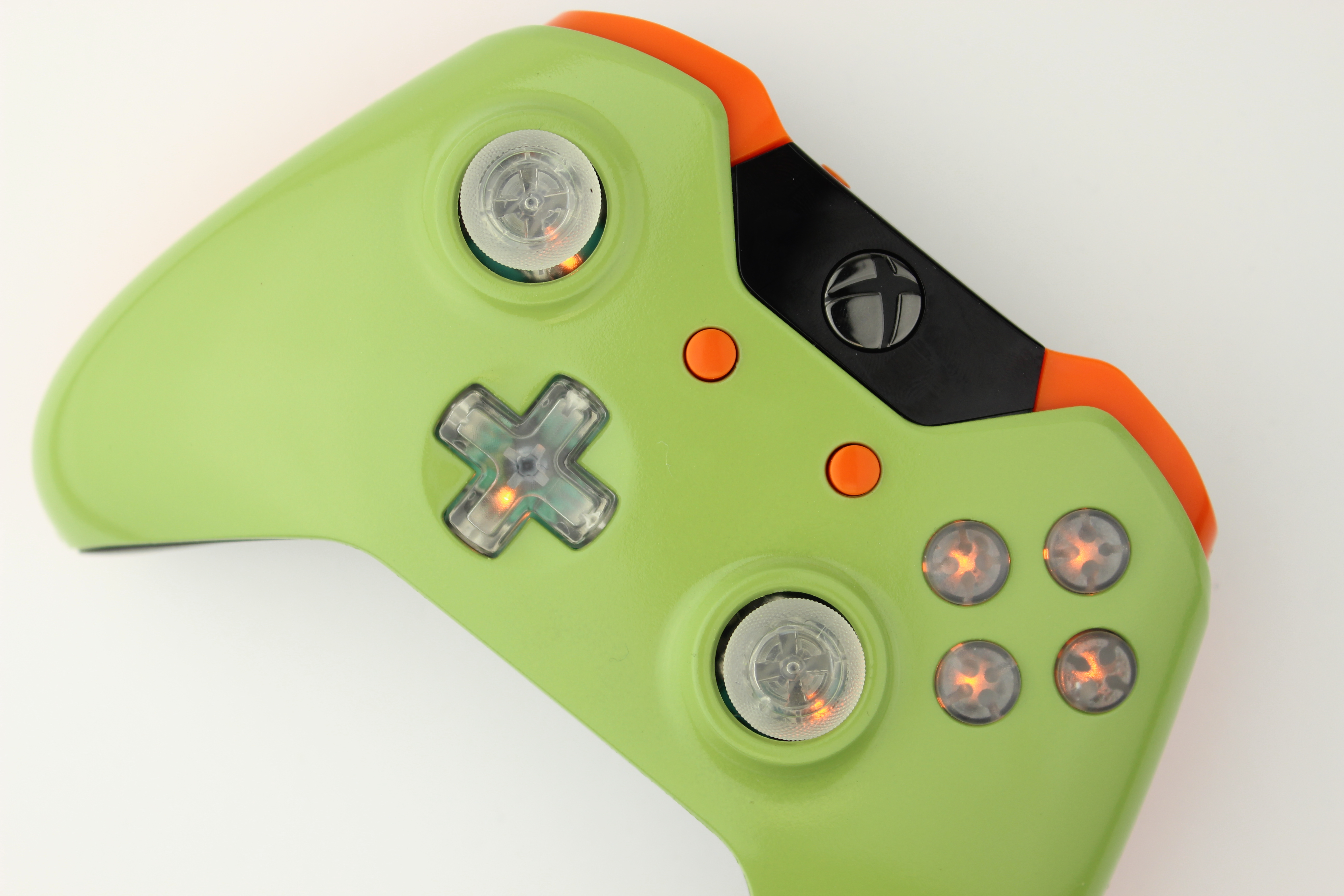Dark Green and Lit Orange Xbox One Controller photos and movies
