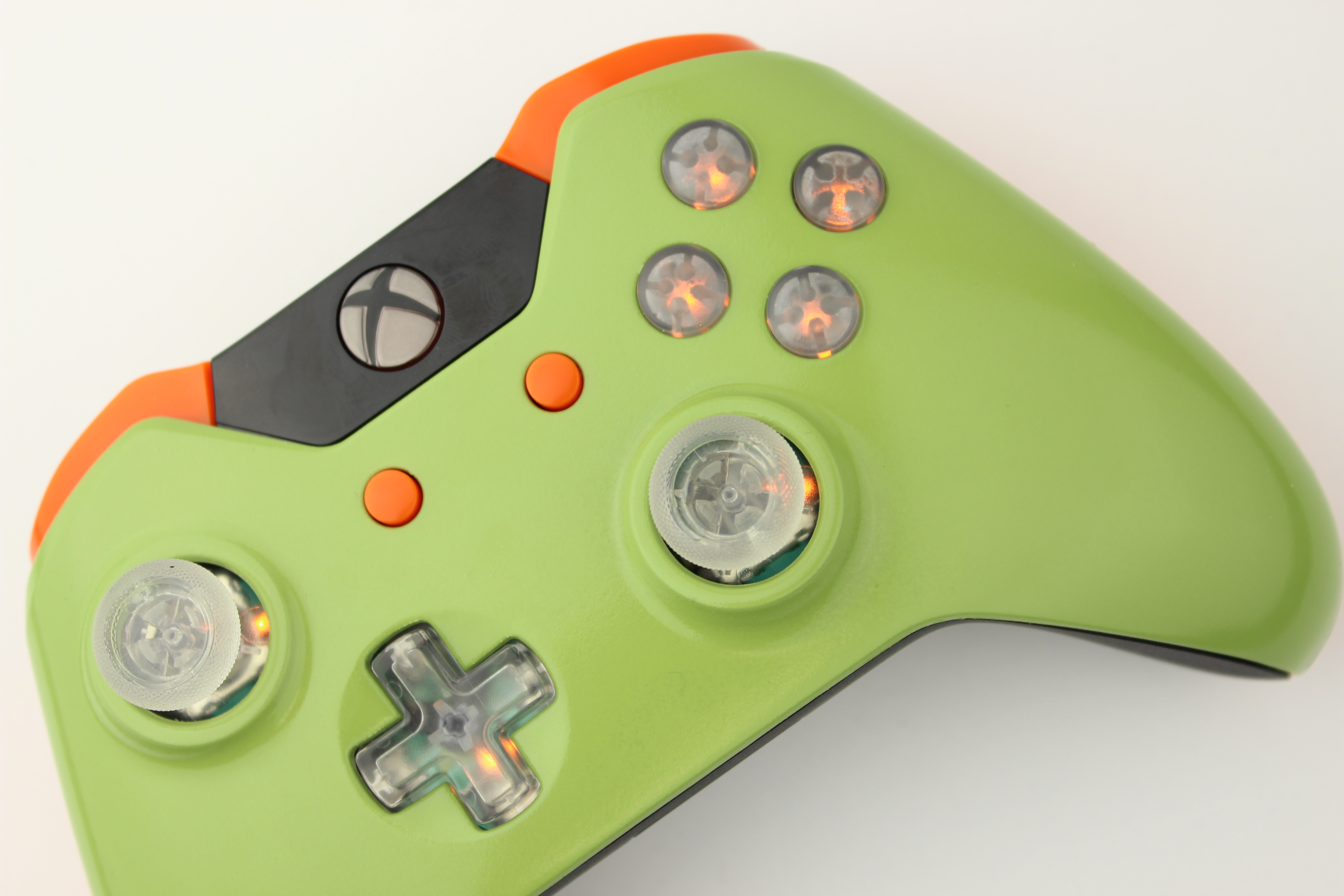 Dark Green and Lit Orange Xbox One Controller photos and movies