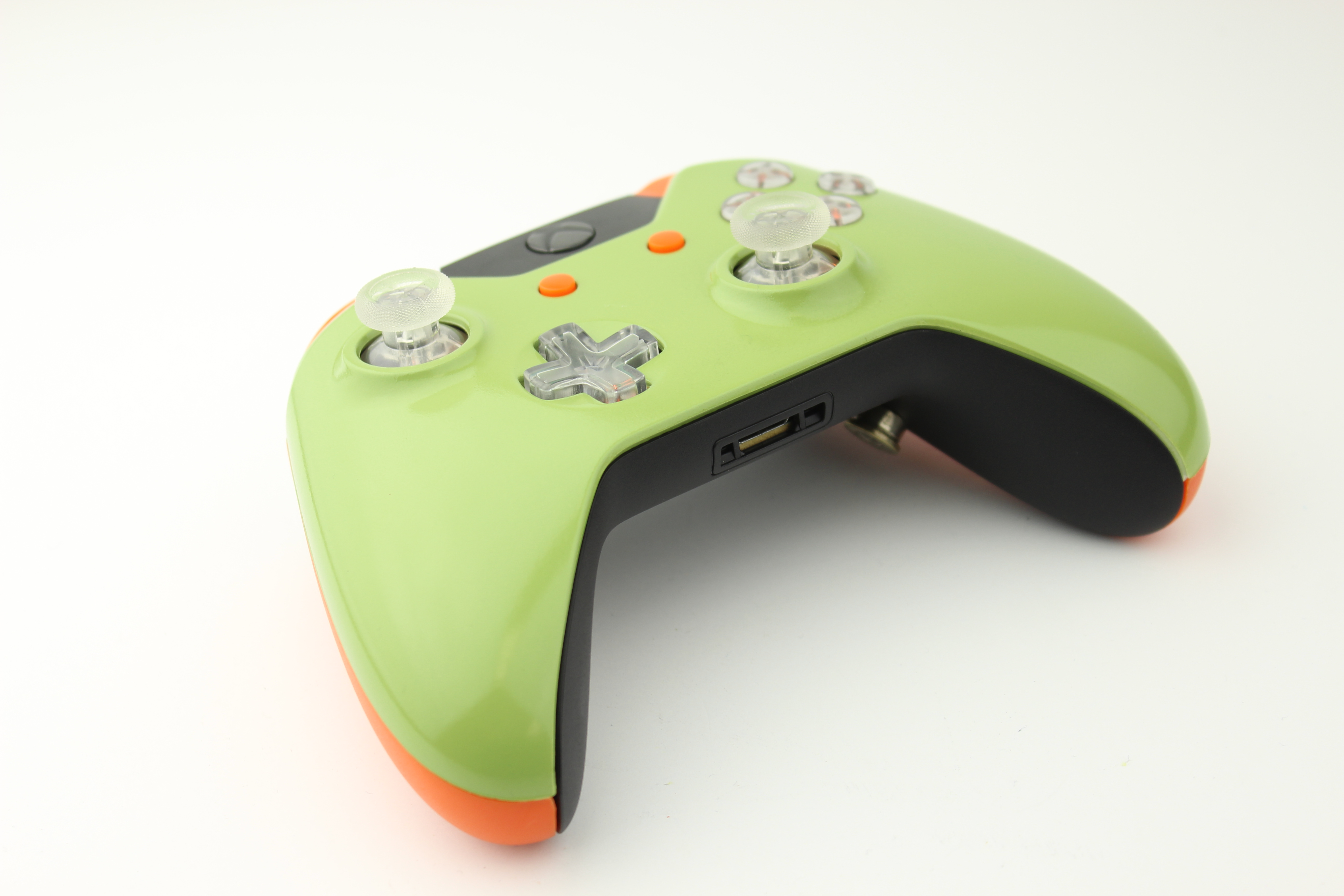 Dark Green and Lit Orange Xbox One Controller photos and movies