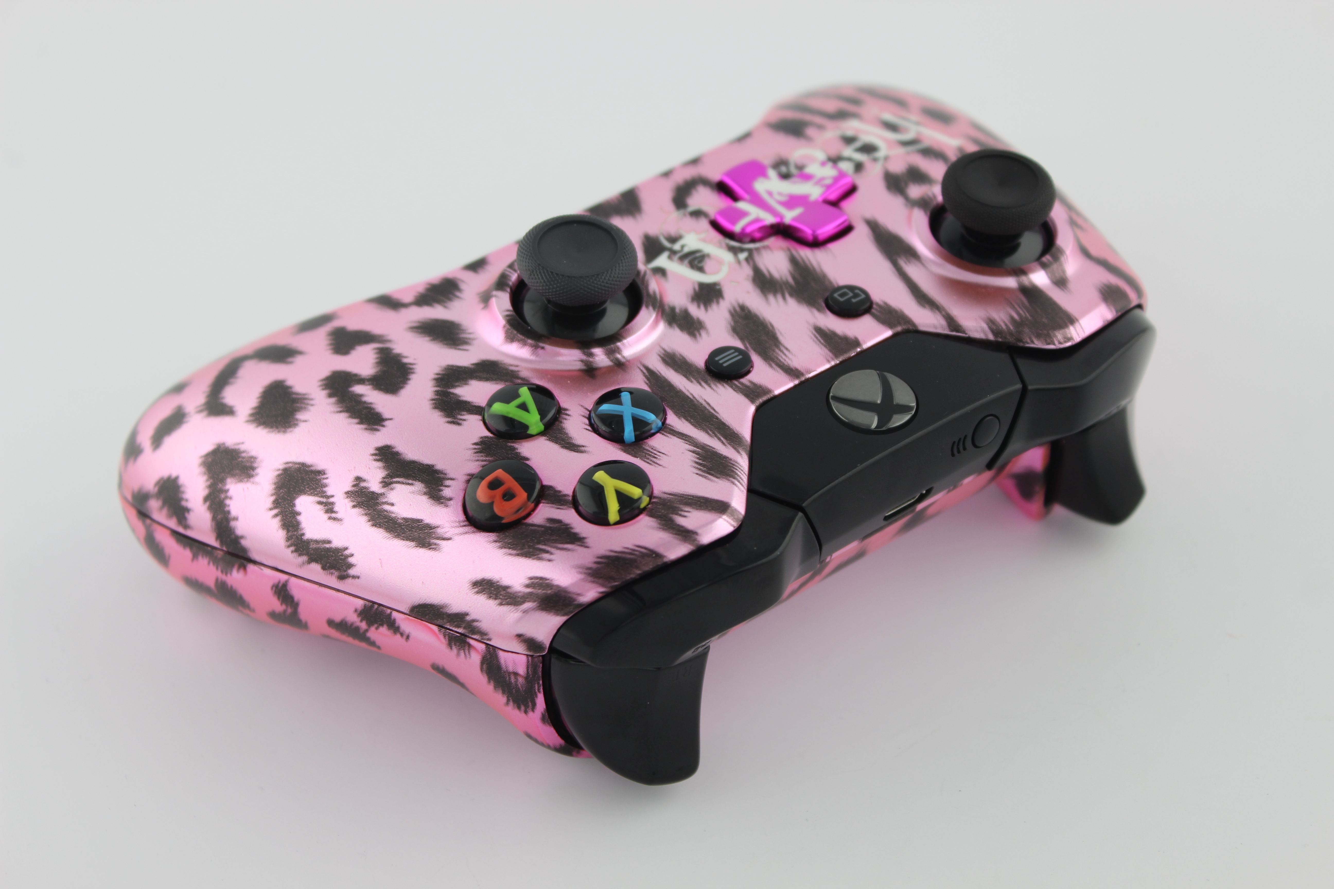 Heavens Pink Chrome Naughty Leopard SureGrip Xbox One Controller photos and movies