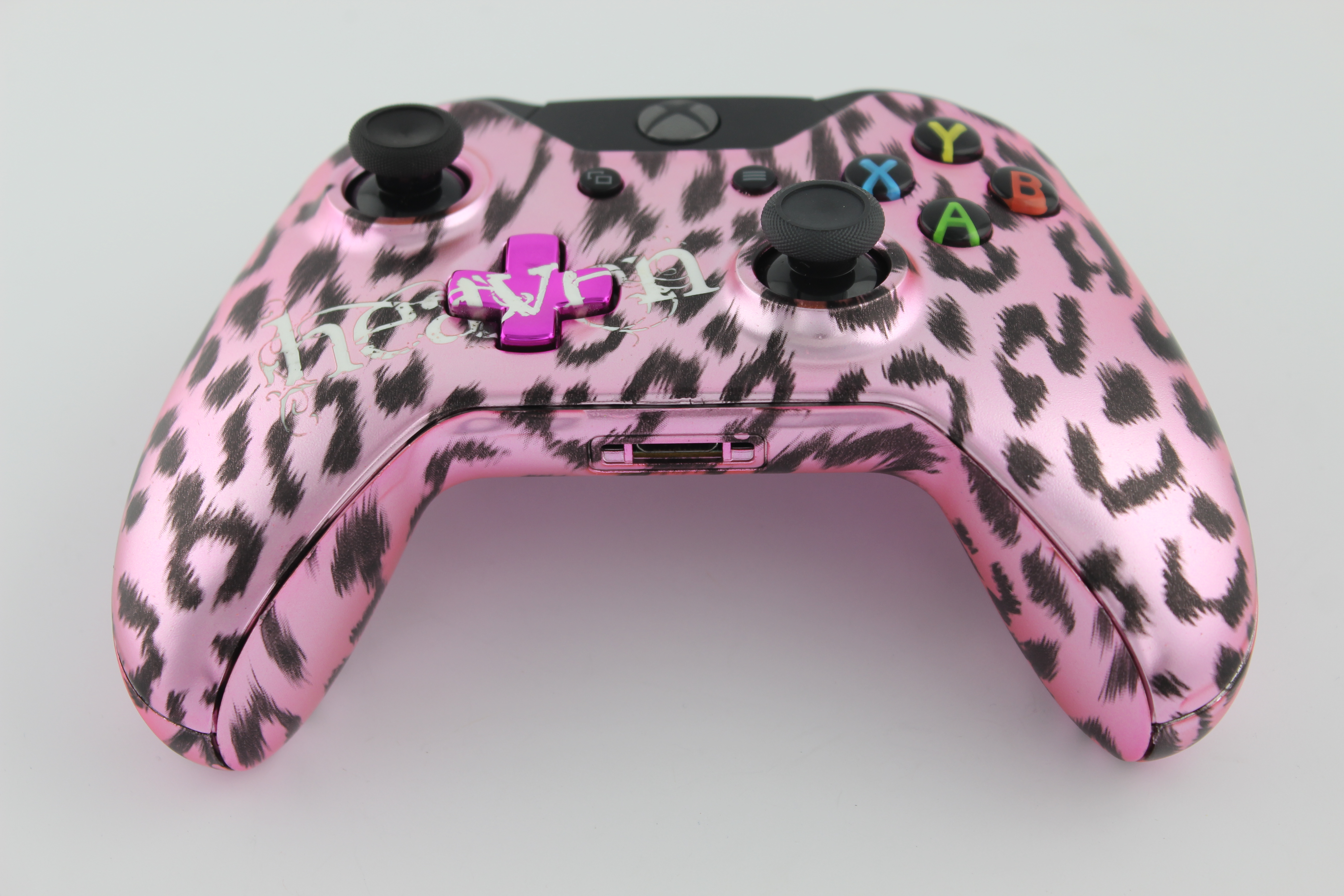 Heavens Pink Chrome Naughty Leopard SureGrip Xbox One Controller photos and movies