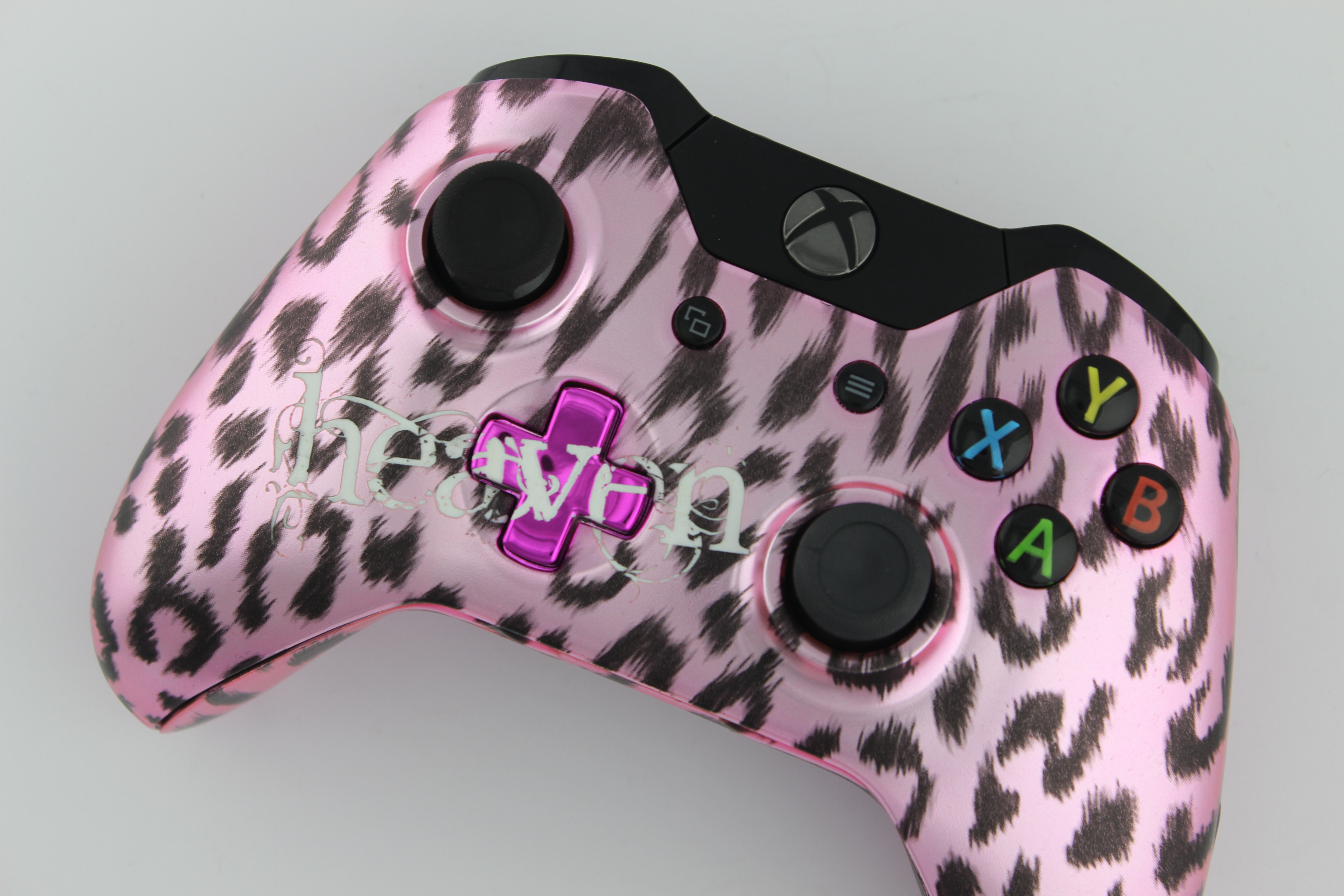 Heavens Pink Chrome Naughty Leopard SureGrip Xbox One Controller photos and movies