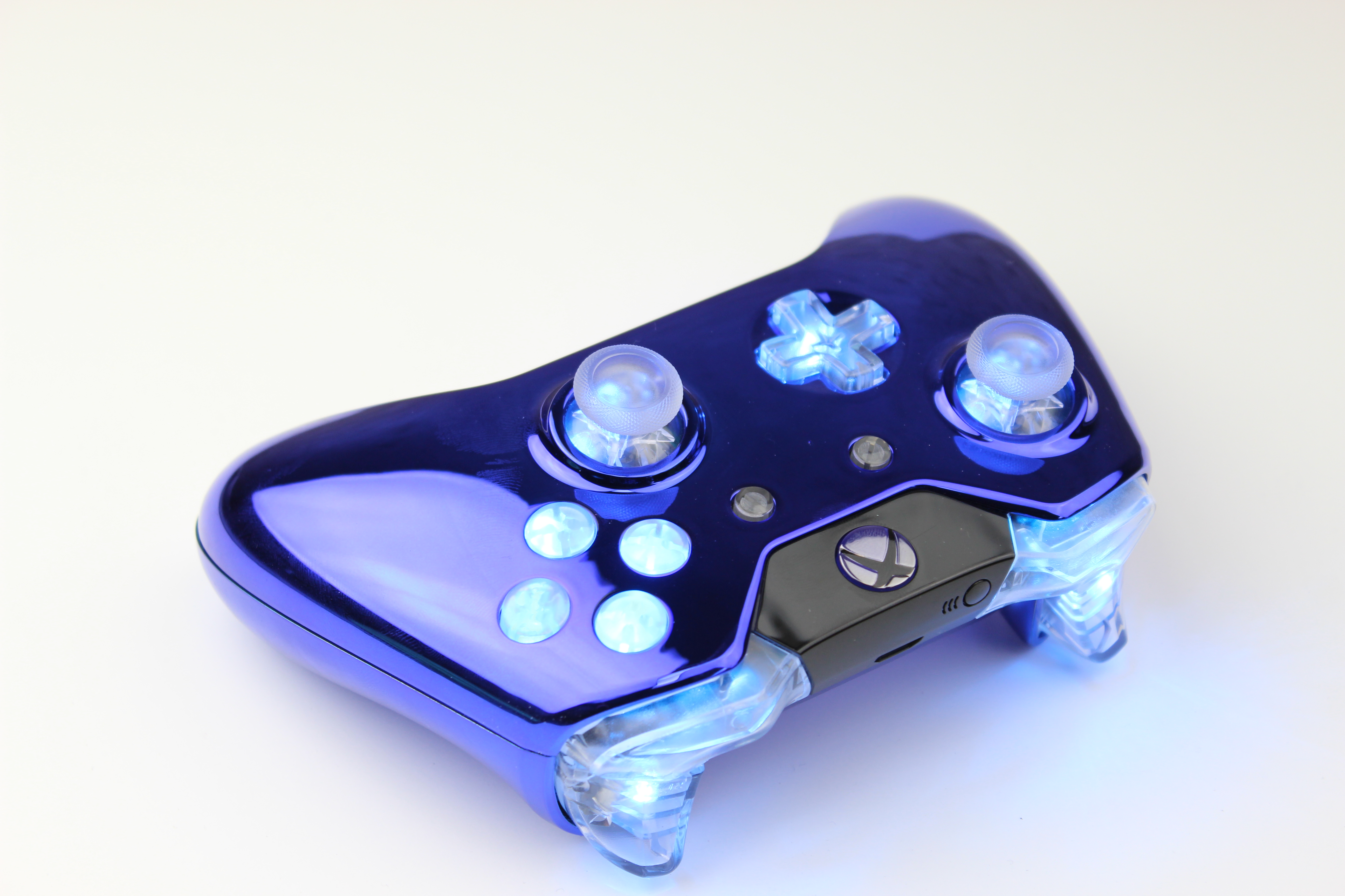 Lit Blue Chrome Xbox One Controller photos and movies