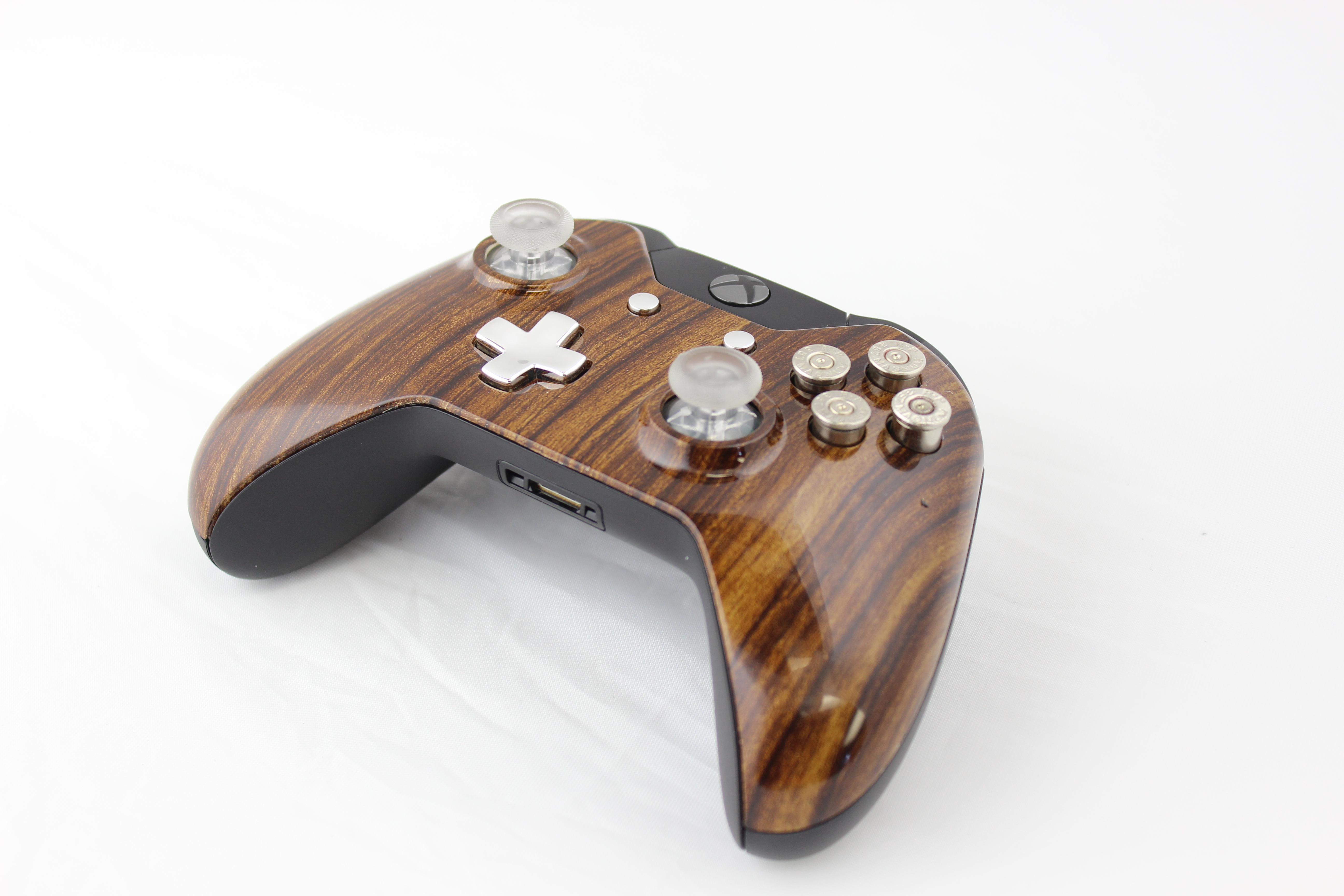 Lit Brown Straight Grain and Chrome Xbox One Controller photos and movies