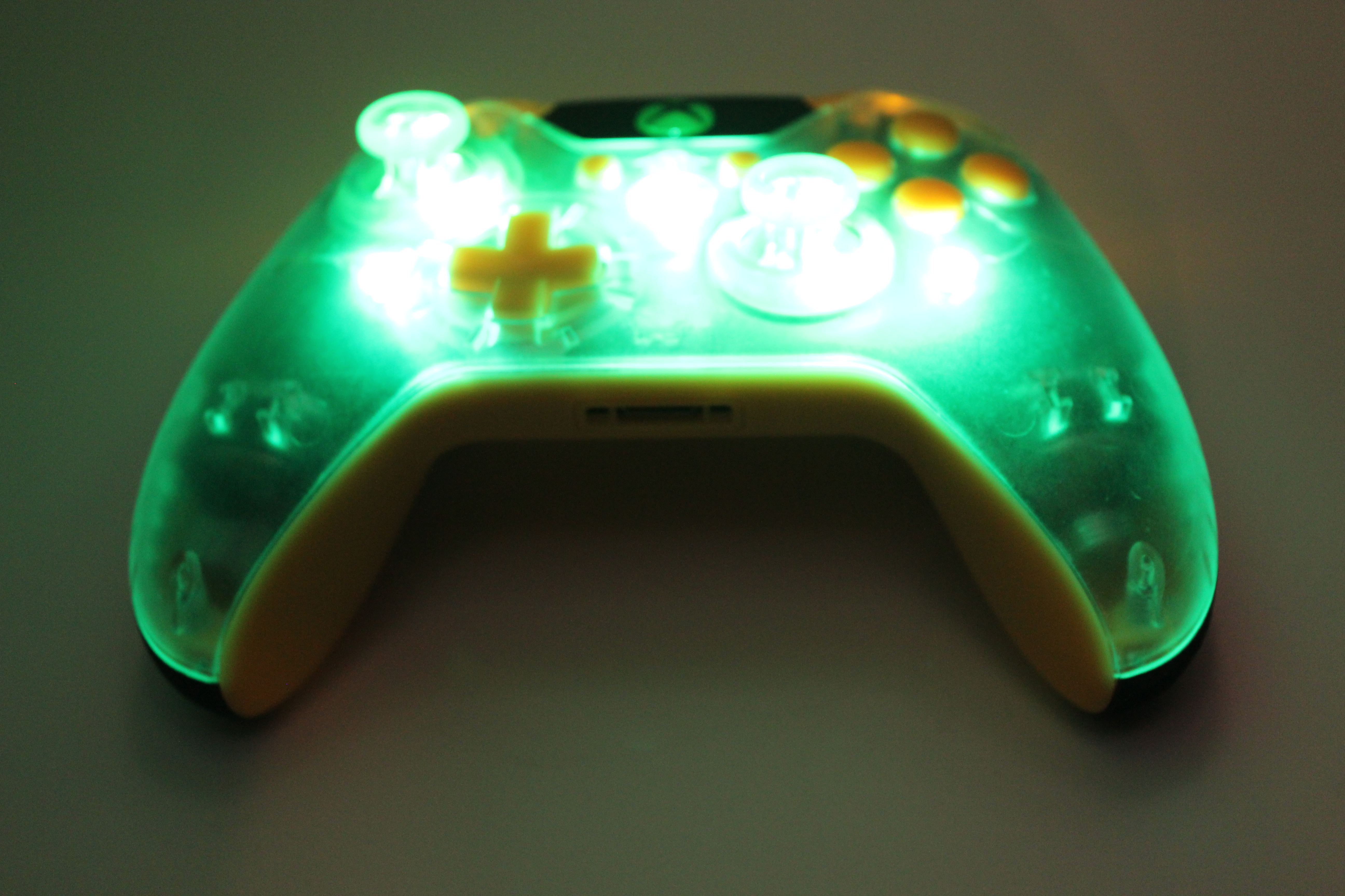 Lit Clear and Yellow Xbox One Controller 14