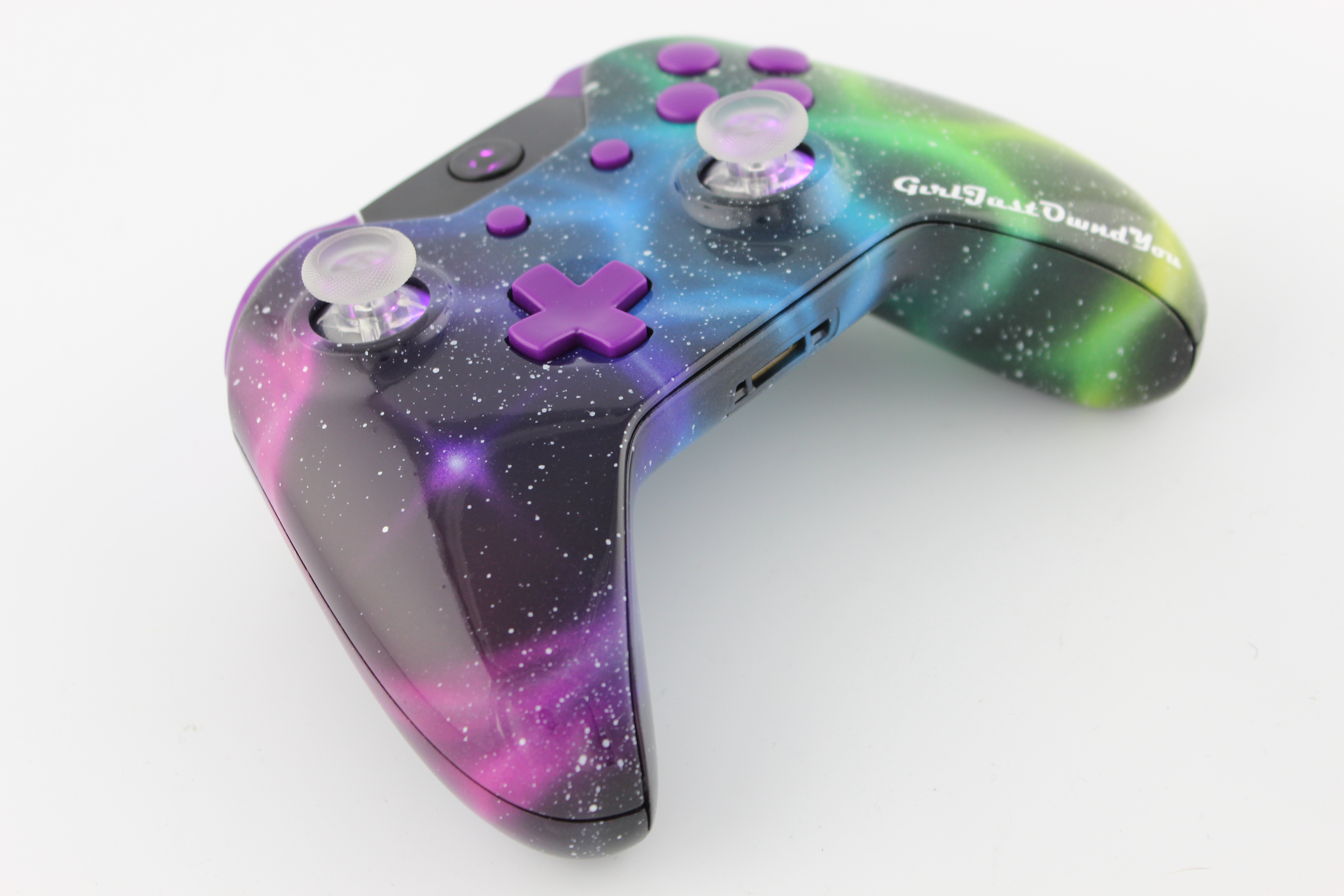 Nebula Lit Xbox One Controller with Purple Buttons photos and movies