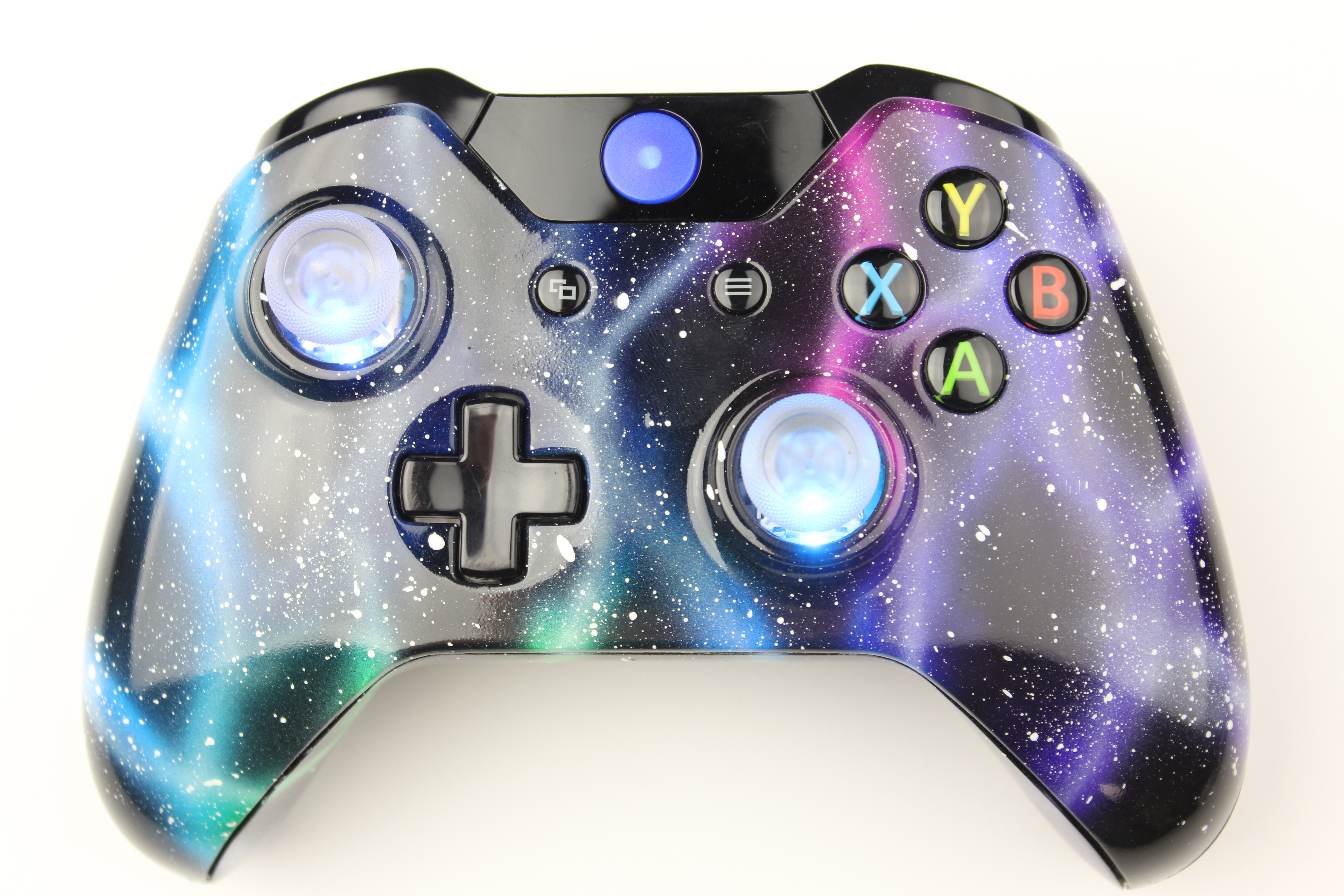 Nebula Xbox One Controller with Lit Blue Sticks photos and movies