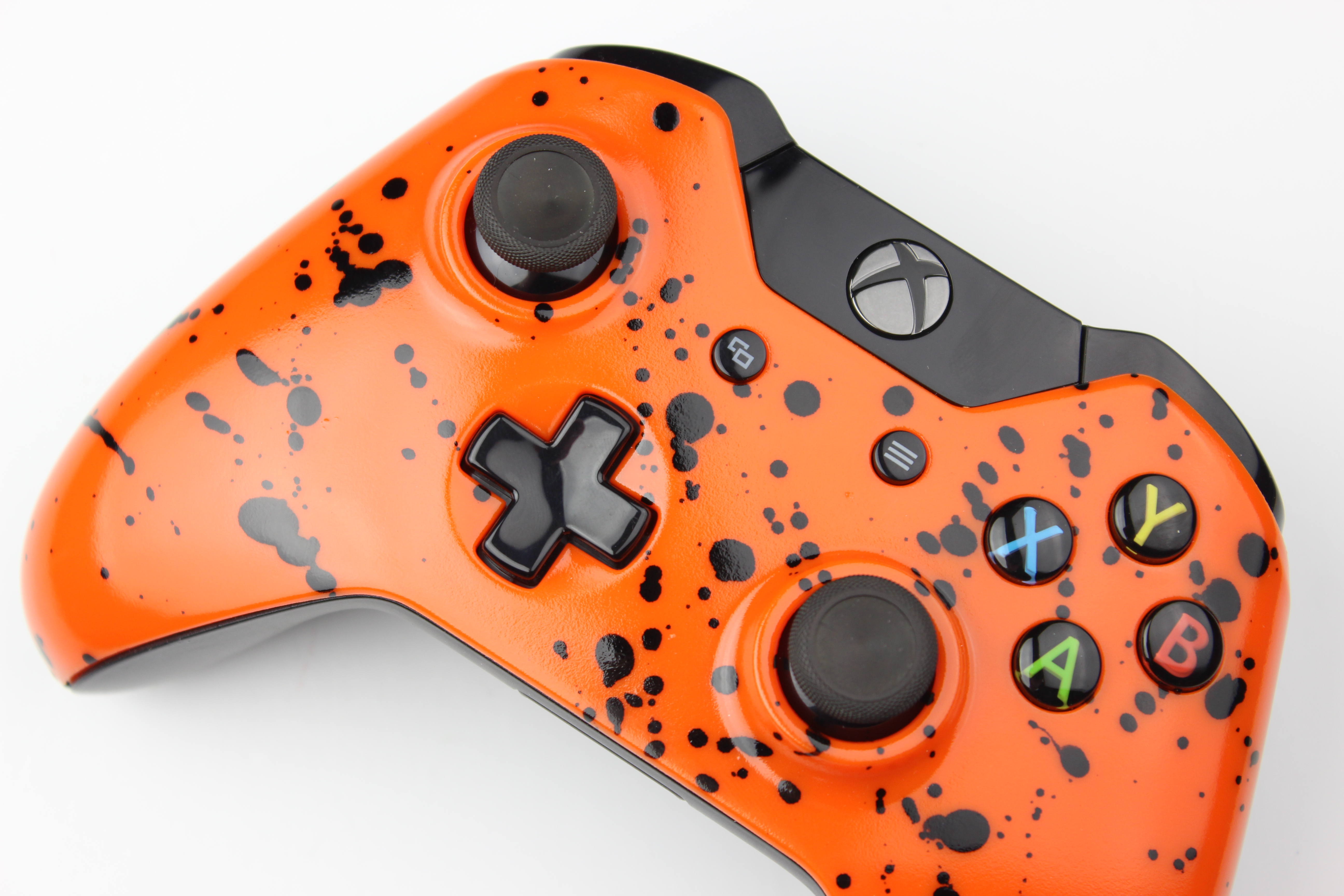Orange with Black Splatter Xbox One Controller photos and movies